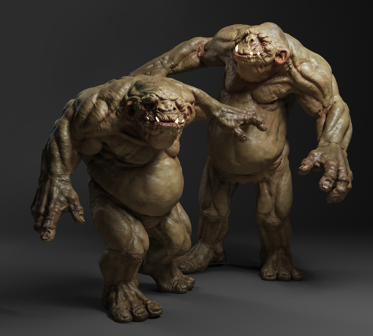 Challenge 20 # Capitaine du Black Bones // gtpixgtpix a répondu à un sujet de gtpix dans Challenge #20 - WIP hello! voici la petite avancée : les deux frères trolls. le petit chef de 1m90, et le grand bedât de 2m40. La base Zbrush est la même pour les deux persos, j'ai juste modifié les proportions et quelques zones. Le rig effectué dans Maya a été adapté pour chacun. J'aurai pas mal de retouches dans photoshop pour coller à mon concept. Je garde la surprise 😉. J'ai fais un petit essai de pose pour tester les rig des personnages. à part quelques zones, ça fonctionne comme je le souhaite.