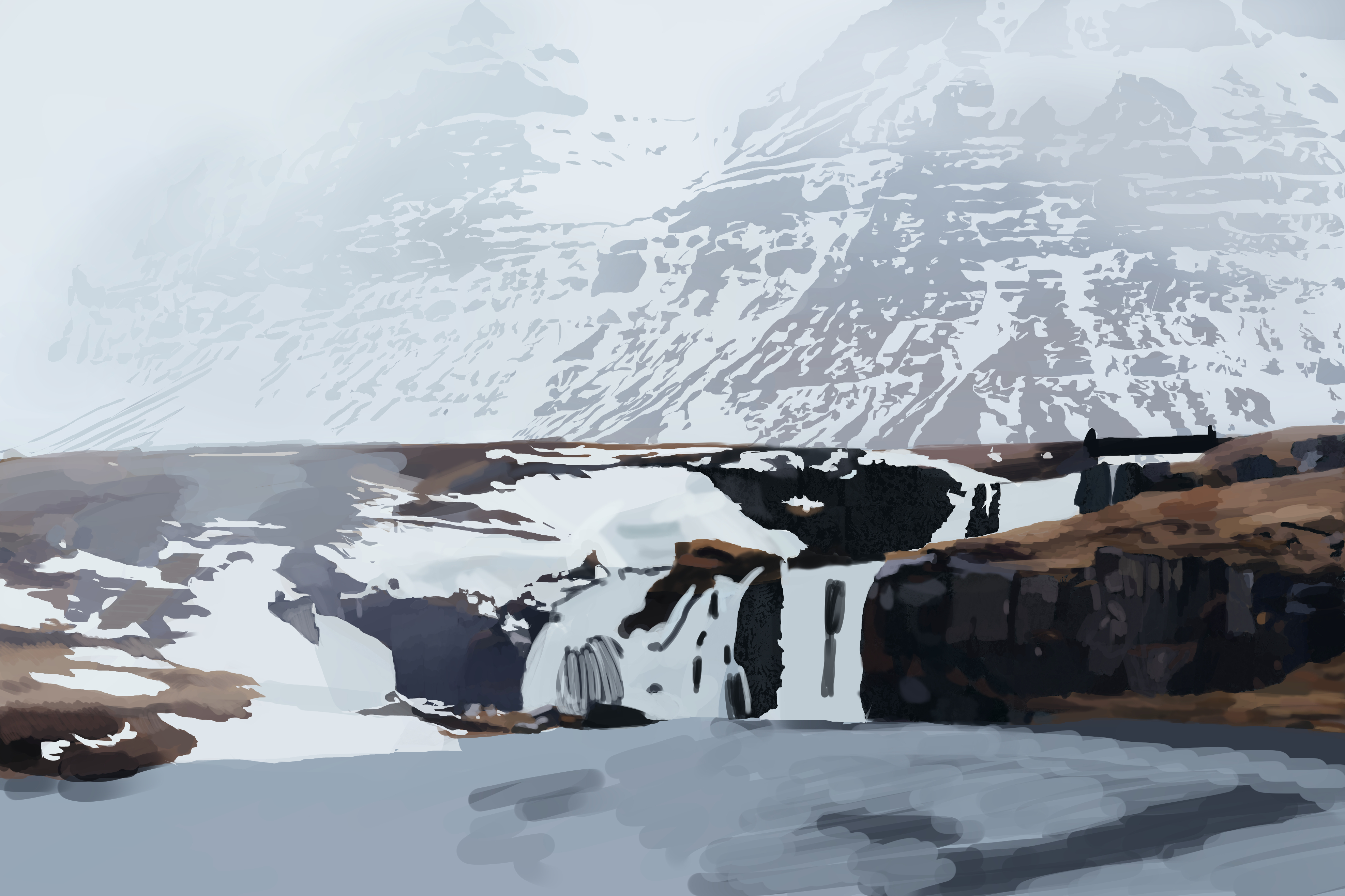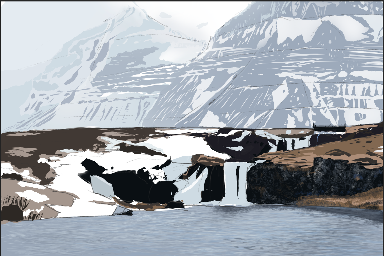 Bonsoir ! Je commence tout doucement l'exercice 3 et je me permets de mettre mon avancé, je posterai la continuité au fur et à mesure 🙂 J'ai déstructuré tout doucement pendant mon dimanche après midi. L'exercice est difficile avec le lasso mais au final je commence petit à petit à maîtriser et naviguer dans mes raccourcis sur mon petit pad tout doucement et ça c'est cool ^^ Ensuite dans la soirée j'ai commencé à faire les détails, surtout dans le bas de l'image, j'ai voulu débuter par l'eau que j'ai fait un peu rapidement, je pense peaufiner au fur et à mesure de mon avancé, j'y reviendrai 🙂 Ensuite mon choix s'est tourné vers le Brush un peu typé craie dont je modifie l'opacité, la taille, etc. selon mes besoins pour le reste pour l'instant. Même si au début je n'étais pas forcément convaincu du résultat, j'ai tout de même continué en me laissant guider par l'ost de Death Stranding dans les oreilles, et d'ailleurs je la trouve parfaite pour nous accompagner dans cette exercice 😁 au final, je ne suis pas trop mécontent du rendu. Petite pause pour moi, hâte de continuer et d'attaquer la montagne ! 💪