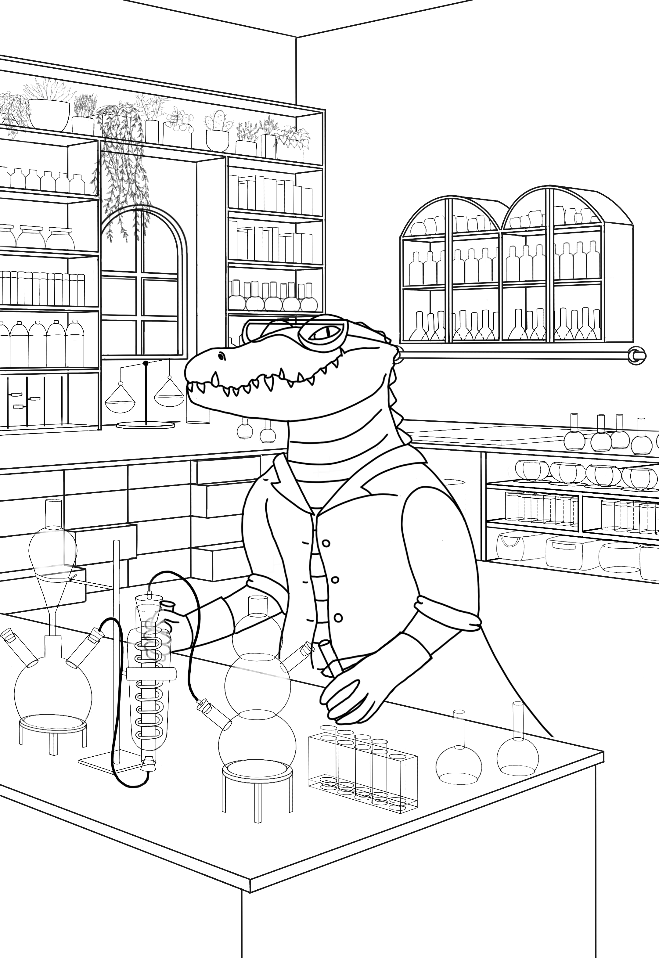 Voici ma correction, J'ai un peu bougé mon croco car les mains étaient initialement placées entre la verrerie, du coup j'ai la droite qui est derrière mon réfrigérant. Est-ce gênant visuellement? Le fait d'avoir des épaules rend quand même plus charismatique, je lui avait aussi oublié un doigt à chaque main le pauvre -