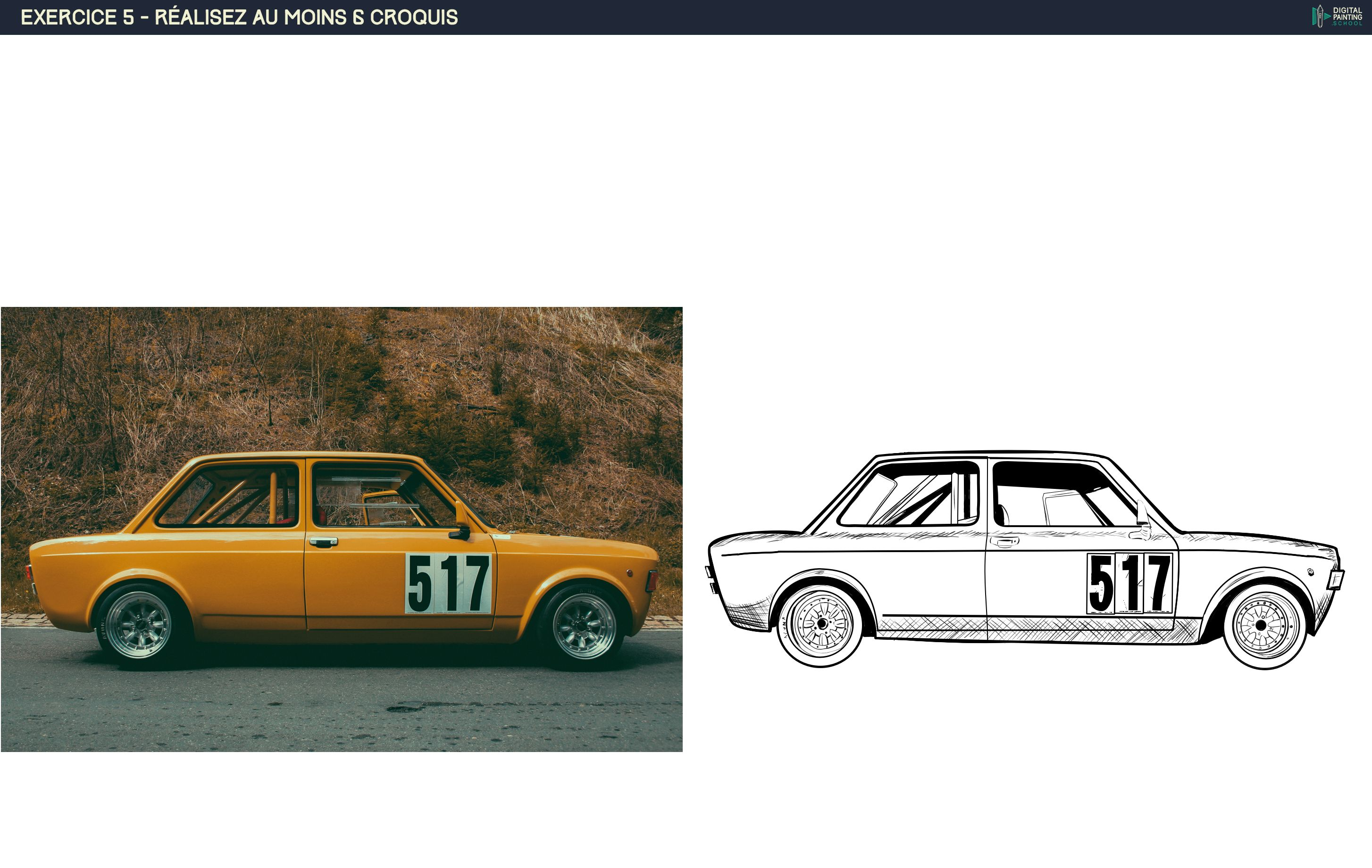 Bonjour, voici mes trois premiers croquis de l'exercice 5. La voiture était assez difficile, surtout très long mais en prenant mon temps ça a été. J'ai de nombreuses fois placé l'image de référence en dessous pour faire mes traits. Sans cela, il m'est impossible d'obtenir des proportions convenables. Est-ce un souci de décalquer ? Je le fais surtout avant l'étape des lignes finales, afin d'affiner le tout.