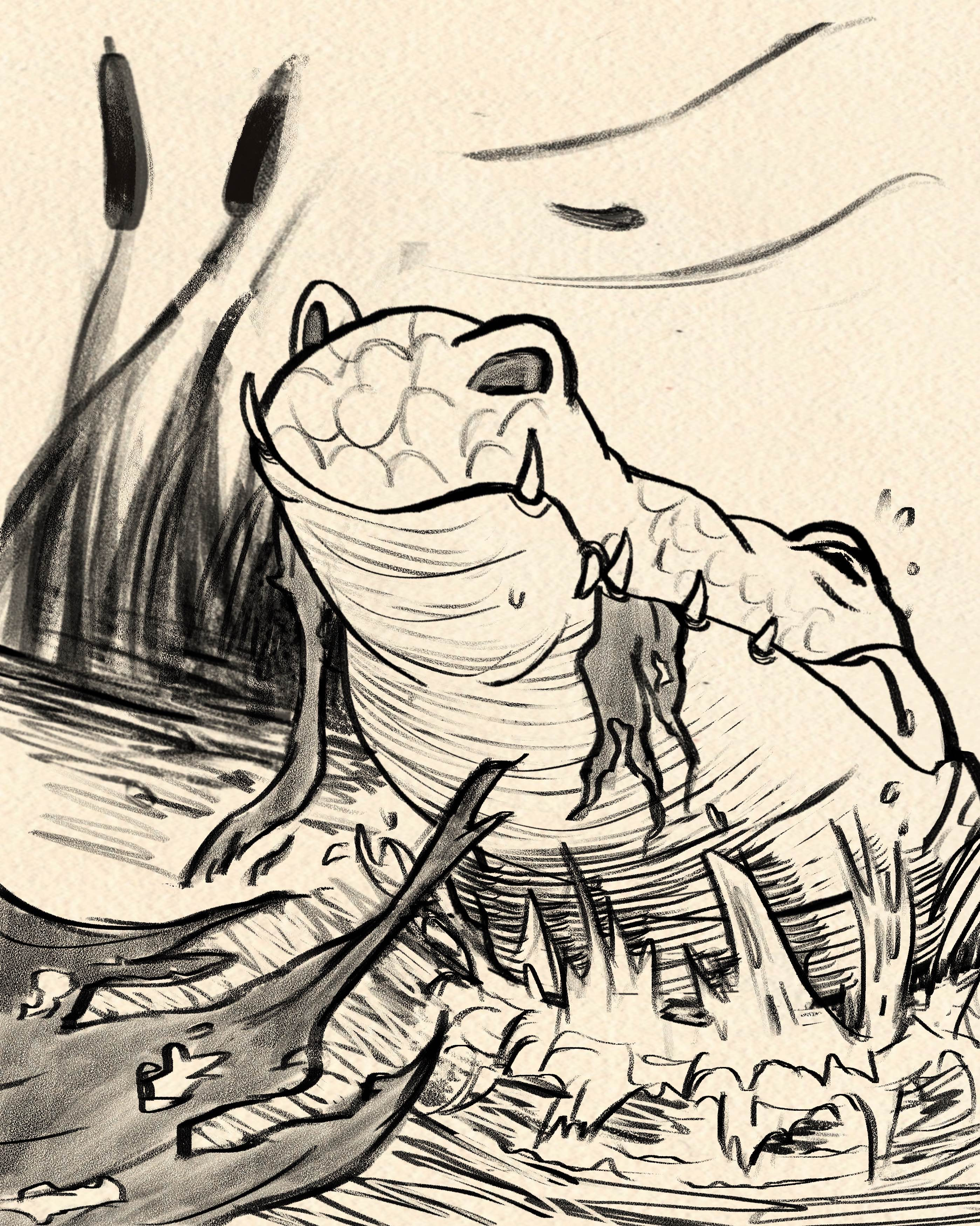 Bonjour ! Je suis un peu plus tôt aujourd'hui, wouah ! 😁 ça fait plusieurs jours que j'ai plusieurs idées pour mes mots, je suis pas partie sur ce que j'avais prévu initialement, mais je suis plutôt contente d'oser des trucs, même si c'est pas toujours maîtrisé et au-dessus de mes compétences. J'espère que c'est à peu près lisible. Souriceau at-il fini en charpie dans la gueule de CrocodilosaurusRex?! 😱 Heureusement, Maître-Rongeur était toujours dans le coin. La suite au prochain épisode ! @marina_sEncore des pôtits chats très bien mis en scène ! Je vois que @fred21a eu la même idée, aha ! Lâche ce rouleau de PQ ! @yubelsTrès sympa celui-ci, on sent bien son côté sanguinaire. @gootHyper original ! @daff Je m'attendais à en voir au moins un aujourd'hui. On ressent bien l'énergie, top ! @Julie LToi tu es partie sur le toutou, bien trouvé aussi. Comment lui en vouloir avec sa bouille adorable ! @DiamonesTrop mignoonne ! @fabioAh je me demandais quelle ref ça serait aujourd'hui, tu m'as bien surprise, et c'est parfait dans le thème. @oknim7déglutit 😍 @ApostroKeWouah, tu t'es vraiment donné pour celui-là, bravo, on sent que tu avais envie de lui rendre hommage à cette super créature ! @GopperusEncore une fois, je ris, j'adore. La perspective est en plus trop cool, et l'expression est incroyable, vraiment bravo !