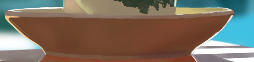 Salut @TheAncient ton poivron est top ! ici j'aurais juste mis un peu plus de brillance dans le reflet de gauche et dans ton rouge, et faire attention a ton trait bleu qui pourrait être moins marqué dans la transition des deux bosses ici dans ton reflet froid tu es peut être un peu trop dans un violet et pas assez dans un bleu 😉 cette partie la peut aussi être un peu plus juste par rapport a la reference surtout au niveau de ton ombre du milieu et avec un reflet un peu plus visible Pour la tasse c'est un bon début !;) ça manque juste de quelque détails et ajustement pour qu'on sente plus de volumes Principalement sur ta coupelle , il manquez des infos sur comme des ombres rouges sur la partie basse et des reflet un peu plus clair sur la partie droite 😉 il manque également l' ombre noir a certains endroit sur son contact avec la table Pour la tasse en elle même tu peux rajouter un flou sur la boucle de maintien 😉 tu peux venir marqué des changement de teinte comme la dans ton motif ref et aussi estomper ton motif vert par endroits surtout les extrémités pour qu'il s'incruste mieux dans la tasse en détail tu peux rajouter la fumée qui sors du haut de la tasse également 😉 continue comme ça j'espère que ca t'aidera 😉