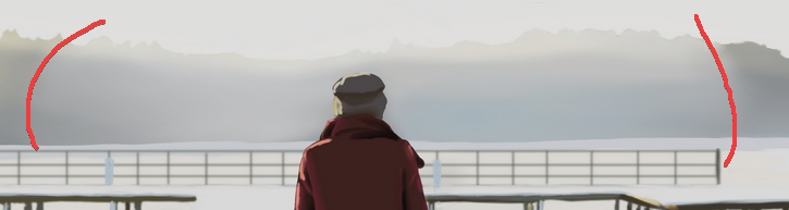 2. Salut @Benjamin😉 Ok alors pour ton premier exercice, je trouve que ça marche plutôt bien, on retrouve l'essentiel au niveau de tes formes 👍 il y a quelques imperfections comme ici, avec des bords un peu saccadés ^^ mais bon tu peux facilement les ajuster avec une gomme dure ^^ Au niveau des couleurs ça marche bien aussi : on pourrait adoucir certaines transitions, comme ici par exemple on voit un peu trop le changement entre tes couleurs, pour ça n'hésite pas à jouer avec la pression de ton stylet ou l'opacité/flux de ton brush 😉 Sinon pour le paysage, là aussi c'est bien dans l'ensemble 👍 même chose ici sur la brume, ta transition est un peu rapide avec l'arrière plan ^^ Et sur le personnage, tu pourrais augmenter un peu la couleur sur la lumière au niveau de la manche ^^ et assombrir la partie centrale de la botte pour lui donner un peu plus de volume 🙂 Voilà sinon c'est bien, continues comme ça ✌️