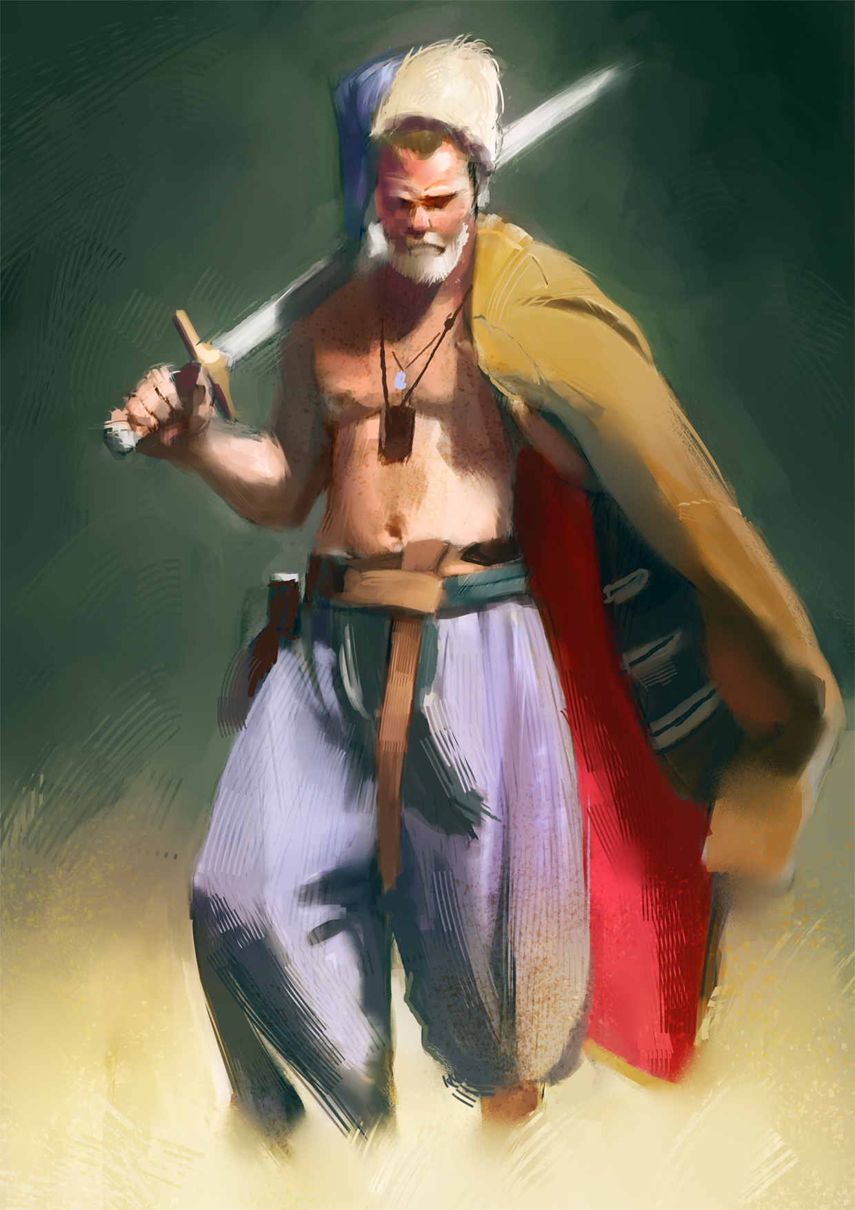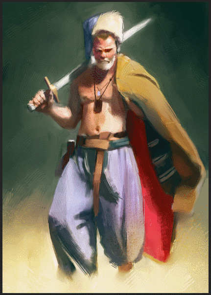 Salut Guigui1977, il serait intéressant de mettre le lien pour le challenge de Step… L'épaule semble un peu exagérée, les pieds collent un peu trop à la marge… Bon brush. -