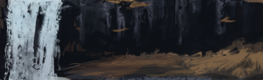 Yes c'est mieux déjà, alors juste un détail, attention aux placements et proportions, par exemple tu as certaines lignes horizontales qui permettent d'indiquer le niveau des éléments entre eux, par exemple la ligne haute du 2nd plan qui sépare du 3ieme plan : Cette ligne est normalement quasiment parfaitement droite : Plus important encore, la ligne de niveau de l'eau : Du bas des cascades jusqu'au haut de la plage de galet à droite on a une ligne droite. Le bas des falaise aussi, il touche l'eau normalement, la partie "terre" n'arrive que plus tard. Ca parait anodin mais ca change complètement les volumes et donc la perception qu'on a de l'espace. Voilà pour les petites remarques supplémentaires ^^ Bon après ce n'est pas le sujet du chapitre donc tu n'est pas obligé de faire la correction mais je le dis à titre indicatif. Sinon tu peux utiliser les guides croquis, ca permet de gagner du temps aussi. Keep it up !
