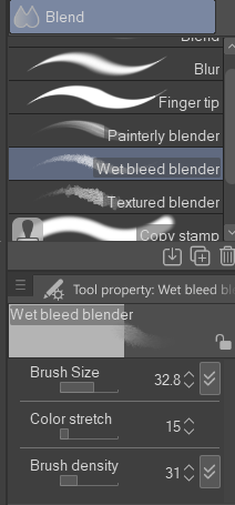 3. j'ai appliqué un blender mouillé pour apporter une correction, et j'ai retracer mes contours sur mes calques inferieurs et avec un filtre gaussien