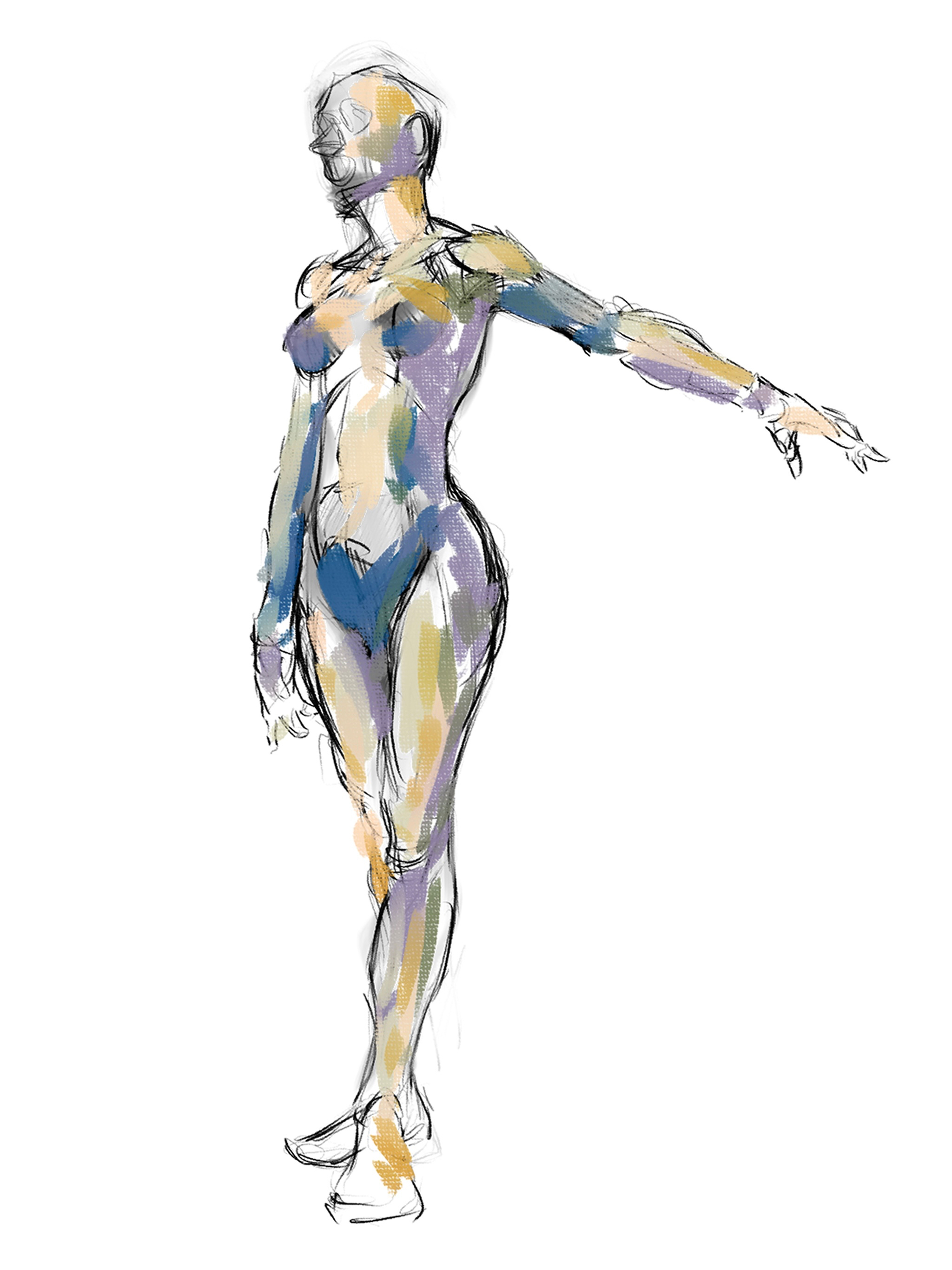 20. Bonjour tout le monde. Ce matin comme je ne savais pas par quel bout commencer j’ai pris le temps de faire le point sur ce que j’ai déjà travaillé ou inversement, quel sont les domaines dans lesquels je ressens encore des lacunes pour me guider sur les jours à venir. Je dirais que je commence à me sentir vraiment plus à l’aise pour tout ce qui est gesture et portrait (colorisation incluse) mais je n’avais pas travailler les mains et pieds depuis longtemps. Aussi en se qui concerne les personnage j’ai encore beaucoup de mal à me détacher du réalisme et styliser/exagérer mes portraits. Pour aujourd’hui j’ai commencé par les pieds. J’aimerais bien travailler le reste dans les jours/semaines à venir. Pour ce qui est des environnements il y a pleins de choses que j’aimerais approfondir comme la composition, la colorisation (j’ai beaucoup de mal à faire des ambiances de couleurs atypiques par exemple) et apprendre à faire toute sorte de matière et textures (bois, roche, mousse, eau, etc) Beaucoup de chose au programme ! Je vais prendre ça petit bout par petit bout mais voilà mon dessin d’aujourd’hui ! Environ 50min 6x5min et 2x10min. Le pied en haut à droite avait un angle assez particulier. Je ne sais pas si le résultat est très lisible. N’hésitez pas à me le dire.