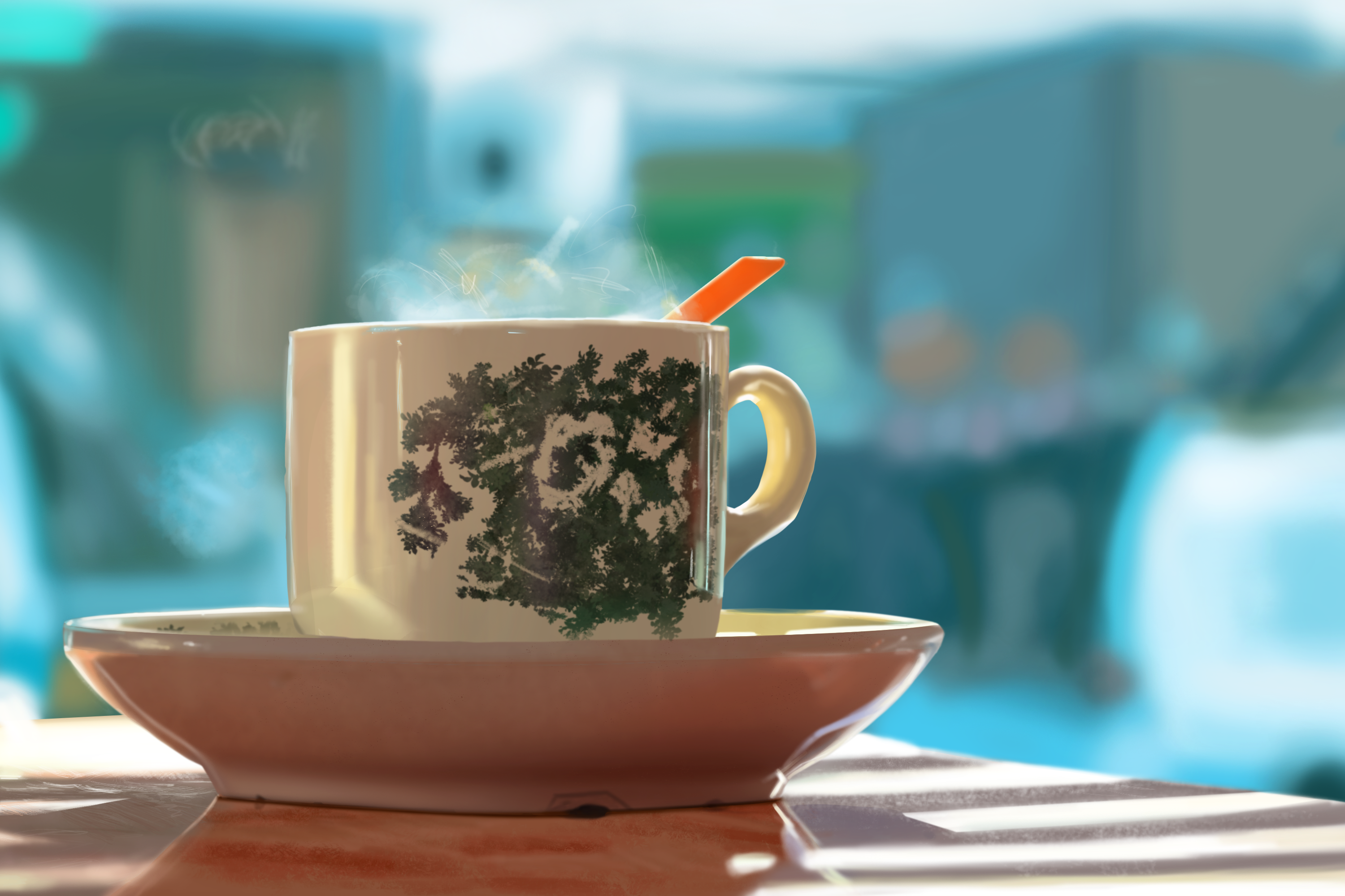 Merci pour les retours Shozart. Branche: Je galère un peu à faire des transitions plus soft tout en gardant de la texture. J’ai réussi à faire un peu mieux mais pas sûr. Tasse: j’ai éclairci le motif de la tasse. Je l’avais foncé un peu en essayant de mettre un ton plus froid suite aux conseils précédents.