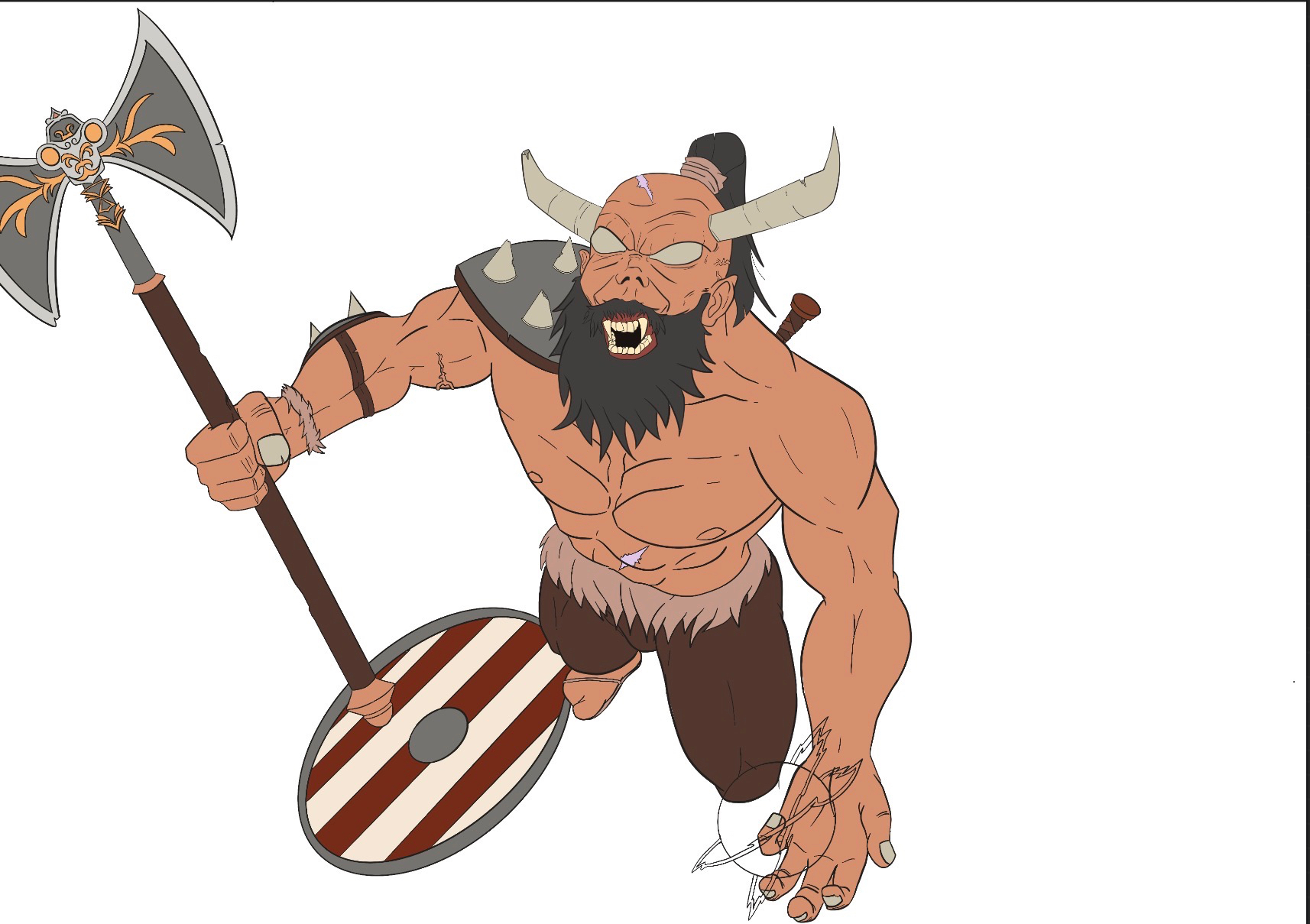 salut, c'est la première fois que je participe au challenge sur dps et je suis ravi de vous partager mon idée de concept d'odin; Je suis partit sur une fille plutôt qu'un Garçon. Elle est n'a que 10 ans, elle est pleine de vie et heureuse mais au fond elle is'est investit d'une quête moins joyeuse, celle de s'infiltrer dans les rangs les plus proches du Roi Ivar afin de venger son père. Pour cela Elle décide de jouer et compte bien vaincre Ivar au jeu de la piraterie. Elle à déniché tout ce qu'il faut pour faire partit d'un équipage, en particulier cette lance cassé en deux récupéré sur un champ de bataille. elle emporte tjr avec elle la seule chose qui lui reste de son père, son sac retrouvé après sa mort.