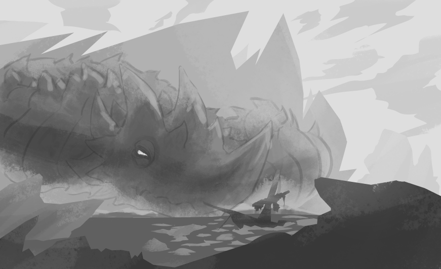 Après, rien n'empêche d'agrandir le bateau en plus grand pour qu'on voit plus sa nature, comme une vue en drône qui se rapprocherait par l'arrière avec le mouvement vers le haut de ton iceberg ? -