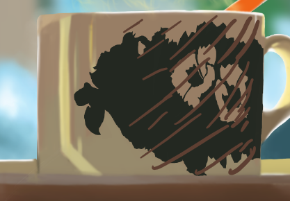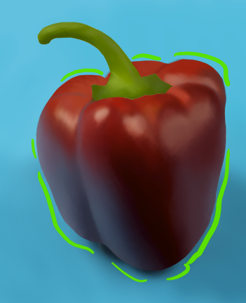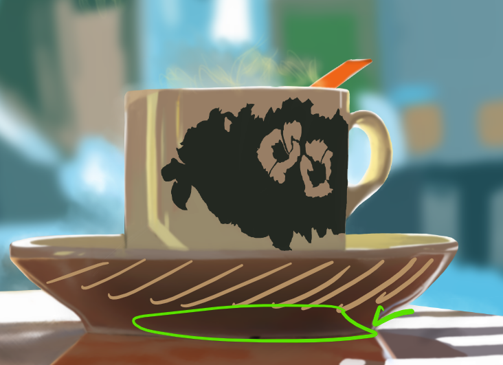 Salut @Artemisa😉 Ok très cool, le rendu marche vraiment bien, bravo 👍 je n'ai rien à redire sur ton monstre ! Et pour ta tasse, là aussi le résultat est plutôt chouette ! je viendrais juste assombrir un peu plus cette partie de la soucoupe, ça lui donnera plus de volume, et sur la partie de droite un poil plus de saturation dans l'ombre ^^ même chose pour la lumière réfléchissante à l'intérieur de la l'anse, un poil plus de saturation ainsi que cette partie, juste en dessous ^^ Sinon pour ton poivron, pas grand chose à dire non plus, c'est bien 👌 sur la partie du haut, on pourrait juste éclaircir un peu la couleur de cette zone ^^ ainsi que ta lumière réfléchissante sur la gauche Voilà sinon c'est bien, continues comme ça ✌️