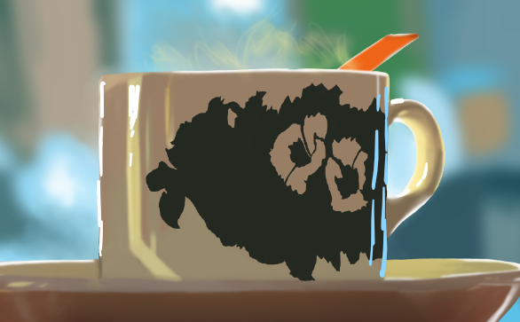 Hello @Ipomete ! Nice pour ton poivron ! ça fonctionne très bien ! Juste peut être certains bords qui mériteraient d'avoir un peut plus le flou de l'objectif, je te laisse re check la ref. Pour ta tasse, ça peut sembler anodin mais c'est important. Essaye de faire le bord horizontale plus droit. Ya une légère ellipse mais en vrais ça se vois à peine. ça sera beaucoup plus juste avec un trait droit (grâce à l'outil rectangle de sélection ou autre). Enssuite, je pense que ce que voulais relever Djayk, c'était surtout la partie inférieur de la soucoupe qui méritait un peut plus de sombre, pas sur la totalitée de la surface. Essaie de faire figurer le léger dégradé sombre/chaud de droite à gauche sur la surface de la tasse pour qu'on sente le volume tourner. Et essaie de rajouter ou être plus franc sur les reflets. Je t'invites à rechecker la ref pour bien tous les représenter. Pour ta branche c'est pas mal du tout ! Juste tu peux saturer la couleur un peut plus à la frontière ombre/lumière. Tu peux également retravailler le volume de la branche dans l'ombre. Représenter une légère light au dessus, une core shadow (c'est l'ombre à la frontière entre lumière et ombre qui est plus intense) et laisser le bas da ta branche tel quel. Bon courage !