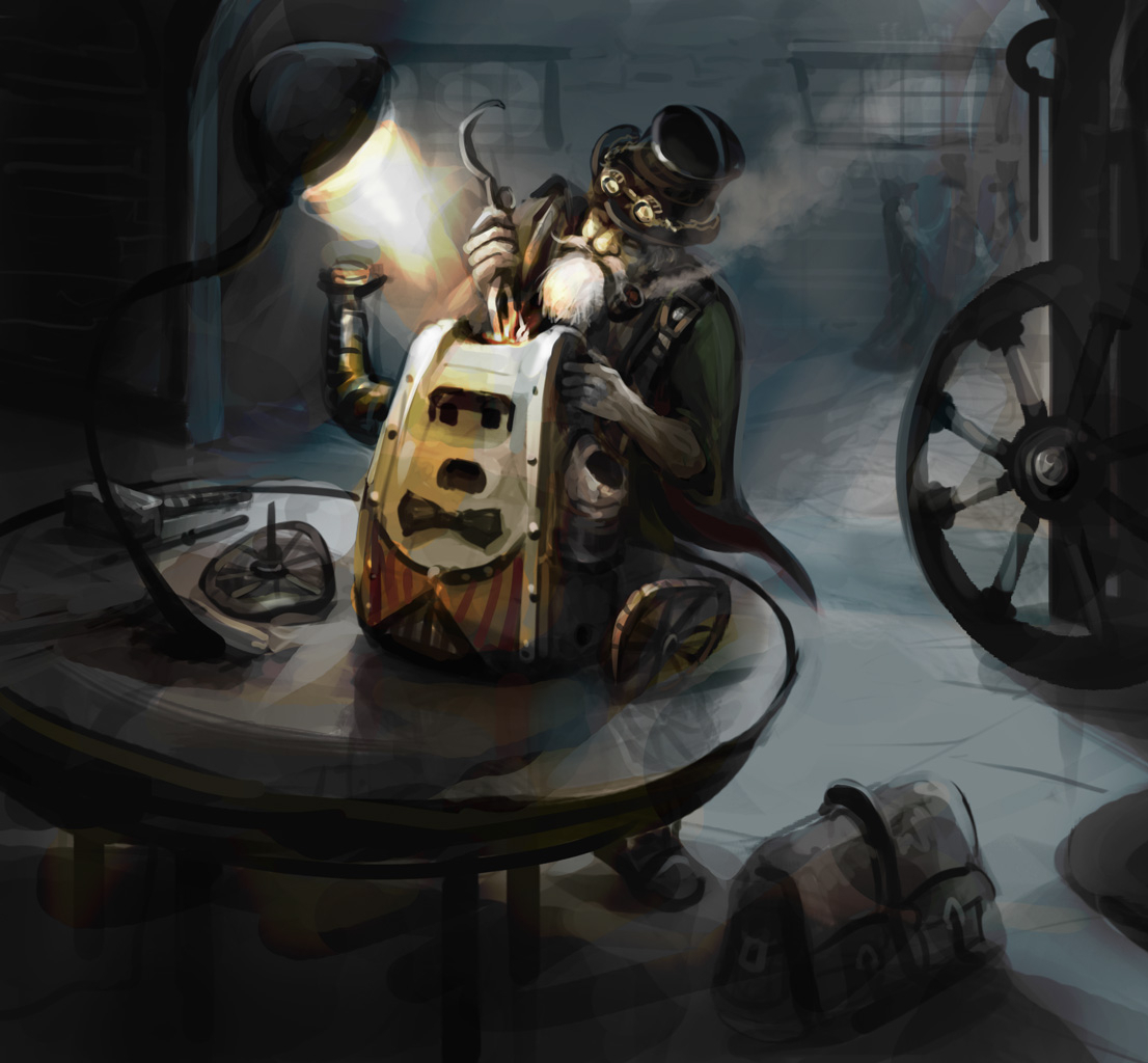 4. Hello @lynaldine Ben moi j'aime bien la version vieille photo. T'aurais même pu rajouter quelques rayures. Par contre attention à tes engrenages. Tu pourrais rajouter un peu d'ombre dessus ils ne font pas du tout intégrés alors que tout le reste à été travaillé. En tout cas, il est top le grand-père. J'en avais un comme ça. Sans la barbe mais bricolo. 😊