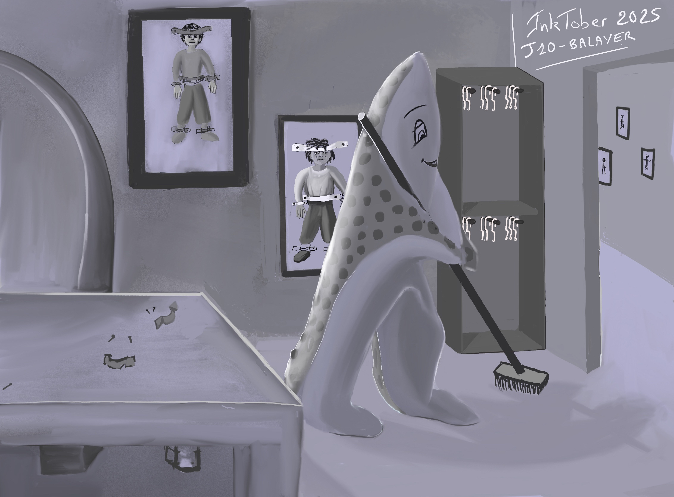 bonjour, J'ai fait un Ancistrus qui balai car c'est les nettoyeur de fond :). @fabioj'adore cette ref. "oust du balai" hahaha @Julie Ltrop chou, on sens que haloween arrive même si dans les magasin ils ont commencer à mettre noël plutôt en avant. @Gopperusj'adore il est vénére. @ApostroKesympas la faucheuse qui nettoie la scène de crime. @Fl0ck0n Félicitation, j'espère que tout ce passeras bien. Sinon ton dessin est très beau, vraiment cool. @daffsuper ref de fantasia. @Image.In.Rha ha on a la suite, a bah oui ca fait du bazar de monter un meuble. 🙂 @stefouIl as pas l'air content de balayer devant chez lui XD. Toujours aussi beau tes illustrations.