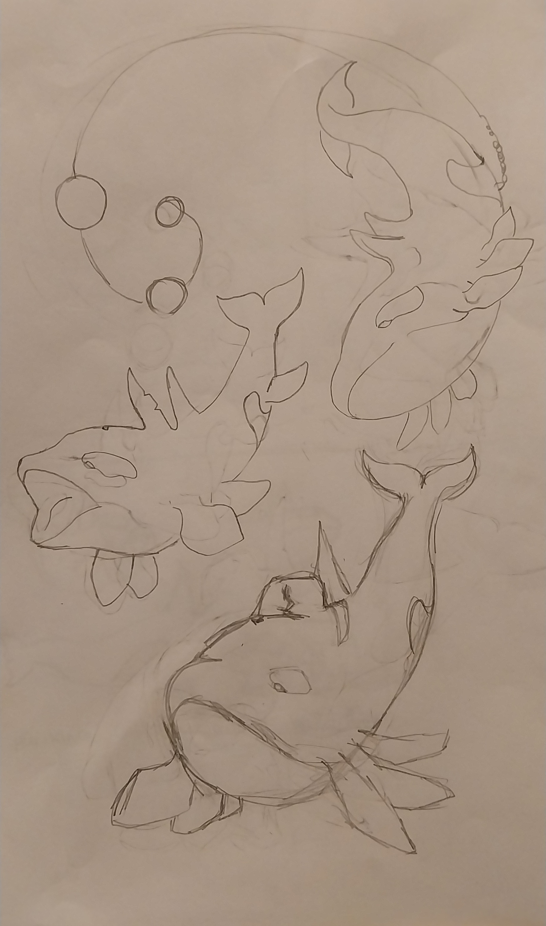 Wouaou, merci beaucoup d'avoir partagé tout ça ! ❤️ Petit questionnement : Dans quelle mesure as-tu défini (au moins en pensée) la silhouette entière de la créature ? Car autant le côté mystérieux du parent (dont on ne voit pas la fin du corps) ne me dérange pas du tout, autant la deuxième partie du bébé au premier plan me paraît mon harmonieuse. Et je ne suis pas sûr de comprendre à qui appartient la tentacule-nageoire qui passe sur le dos de ce bébé !