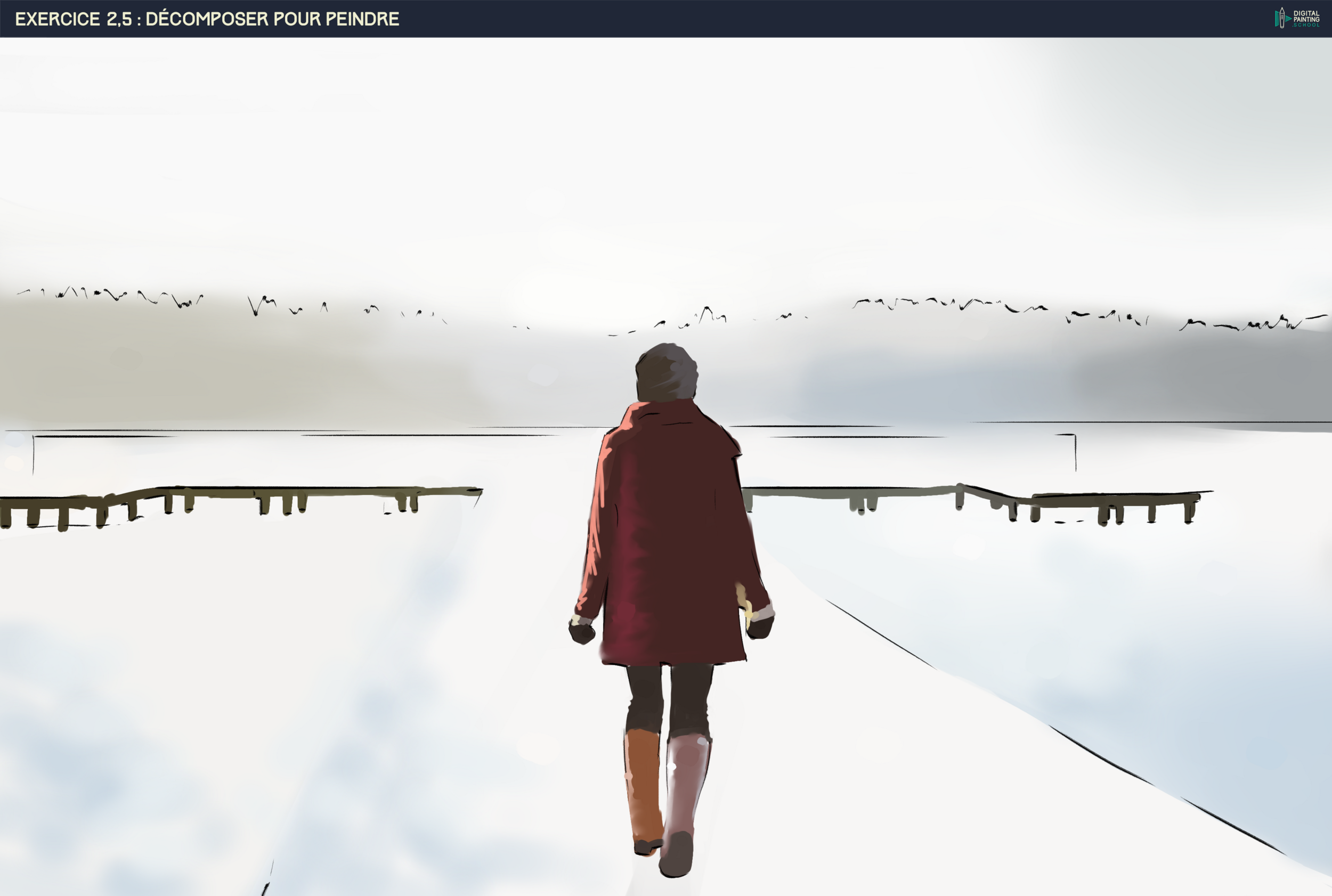 Je pense que j’arrive bientôt au bout. j’ai fais les ajustements que je voulais sur la couleur et les lumières, j’ai rajouté les bébés (la silhouette du deuxième ne me plaît pas, je vais la refaire). je réfléchi à rajouter un objet devant le bébé de gauche pour accentuer son côté curieux que j’ai essayé de donner, à voir. On est vraiment à 95% du résultat final là je pense -