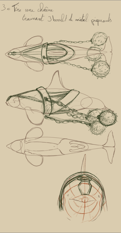 Bonsoir à tous, Une petite publication du travail en cours. J'ai tourné un peu plus l'orque bélier vers nous. Il faut que je les équipe maintenant ! -