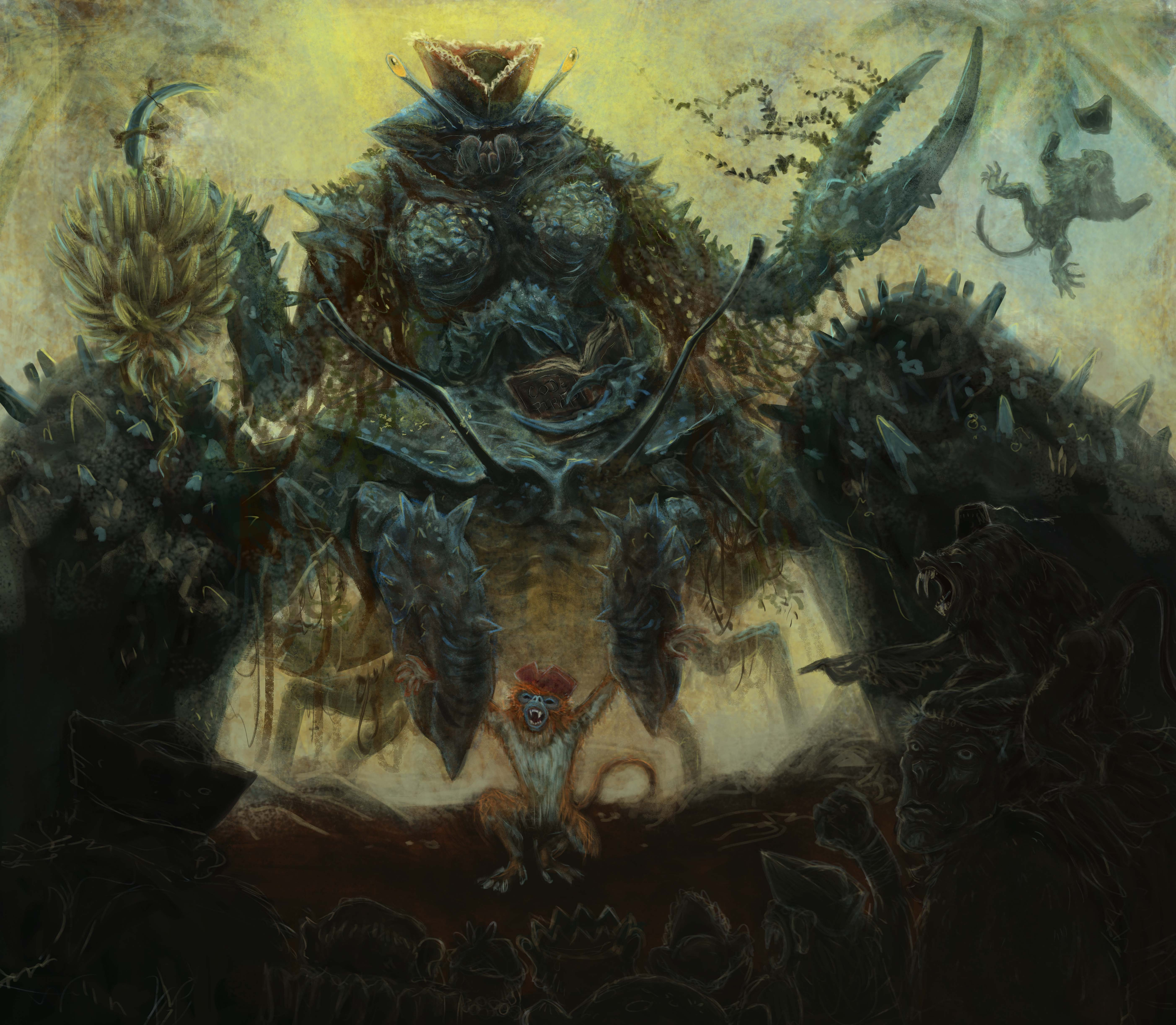 update j'ai fini mon illustration du capitaine du black bones et je suis assez fière du resultat mine de rien je vous partage le wip du process j'ai commencé par faire une liste ordonné de ref pour me faire une idée du moody que je voulait donné a l'illu après les thumsbsnails j'ai eu un peu de mal a choisir vue que j'en avait fait bcp finalement j'ai fusionné ceux que j'aimais bien -