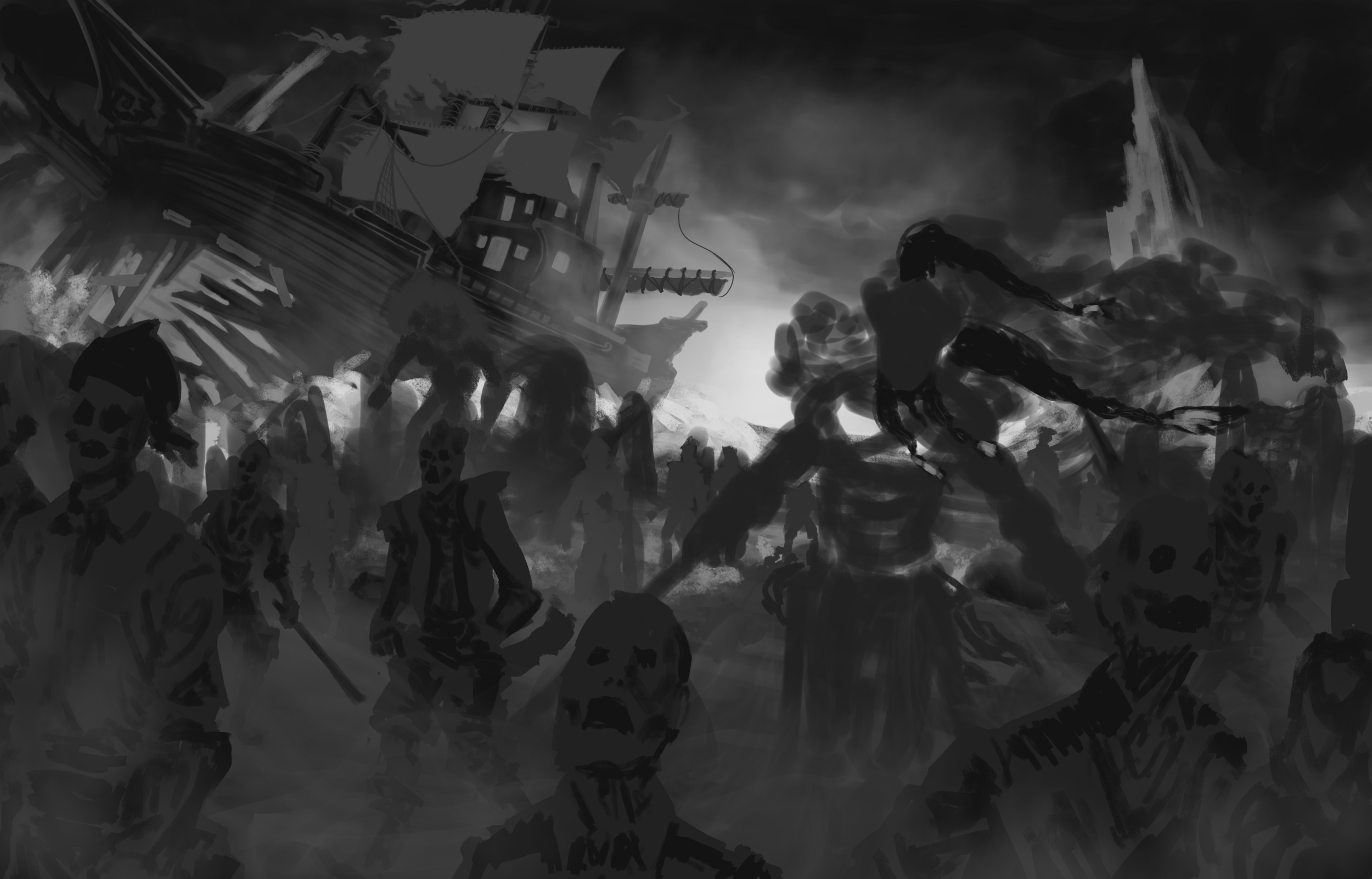 update j'ai fini mon illustration du capitaine du black bones et je suis assez fière du resultat mine de rien je vous partage le wip du process j'ai commencé par faire une liste ordonné de ref pour me faire une idée du moody que je voulait donné a l'illu après les thumsbsnails j'ai eu un peu de mal a choisir vue que j'en avait fait bcp finalement j'ai fusionné ceux que j'aimais bien -