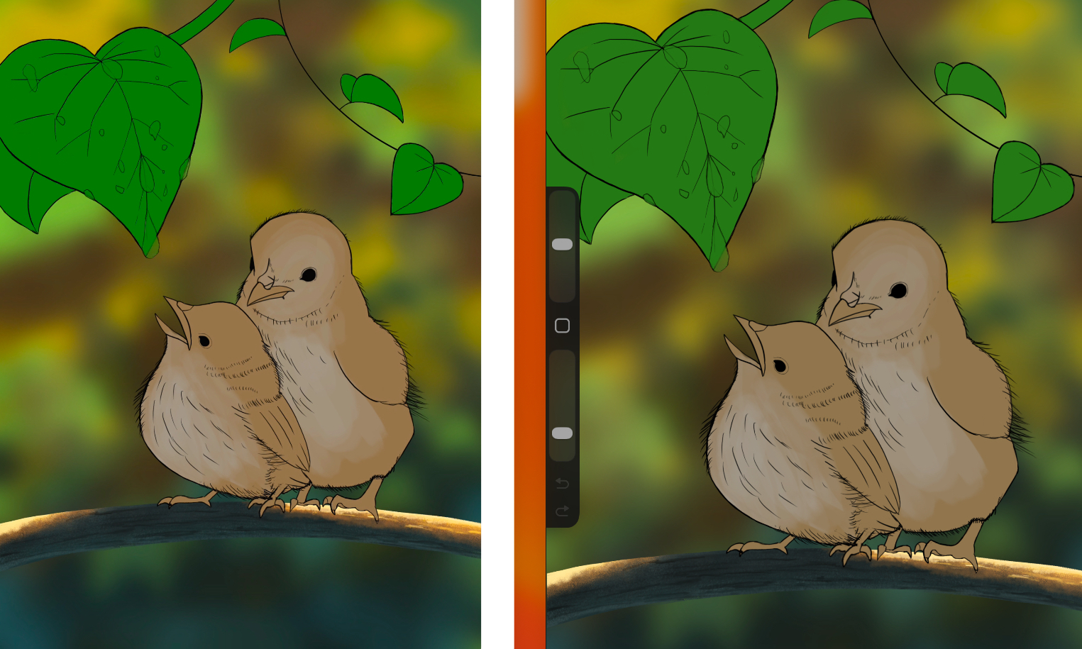 Salut @lucinata, Est-ce que le résultat est pareil sur ton image postée et ton image sur ton ordinateur (le fichier, pas ce que te renvoi ton espace de travail sur Photoshop) ? C'est souvent lié au fait que tu soit en sRGB (tu peux cocher la case au moment d'exporter normalement) Sinon, pour ce qui est de ton avancée de l'illu des oisillons, ça prend bien forme, c'est bien ! Je vois simplement 2 choses à ajuster ici : Le bec ici qui est trop fin au niveau des 2 parties qui le constitue. Et ici où les proportions des pattes du grand oiseau sont trop petites par rapport au reste de son corps. Bonne correction & continuation ! 🙂