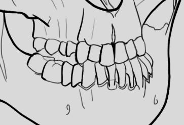 Salut @Obyart, C'est globalement du bon travail sur ton croquis du crane ! 👍 2-3 petites choses à relever : Pour la cavité nasale, tu peux la décaler de quelques px vers la droite. Aussi, attention à la forme que lui donne de manière générale qui est trop "fine". Sur la partie haute également, tu peux particulièrement l'élargir pour lui donner + ce côté arrondi. Cette partie là de la machoire est très légèrement trop petite en termes de hauteur si on prend pour repère l'espacement entre le bas de la machoire et les dents. Enfin ici, fais bien attention à ce que ce soit le menton qui soit bien la "pointe" de la machoire. Si tu regardes bien, le menton a un aspect assez carré et ensuite seulement, sur la droite, on repart sur le côté latéral de la machoire. Dans ta version, les 2 sont un peu trop inter-mêlés. Voilà pour l'essentiel. Bon travail ! 🙂