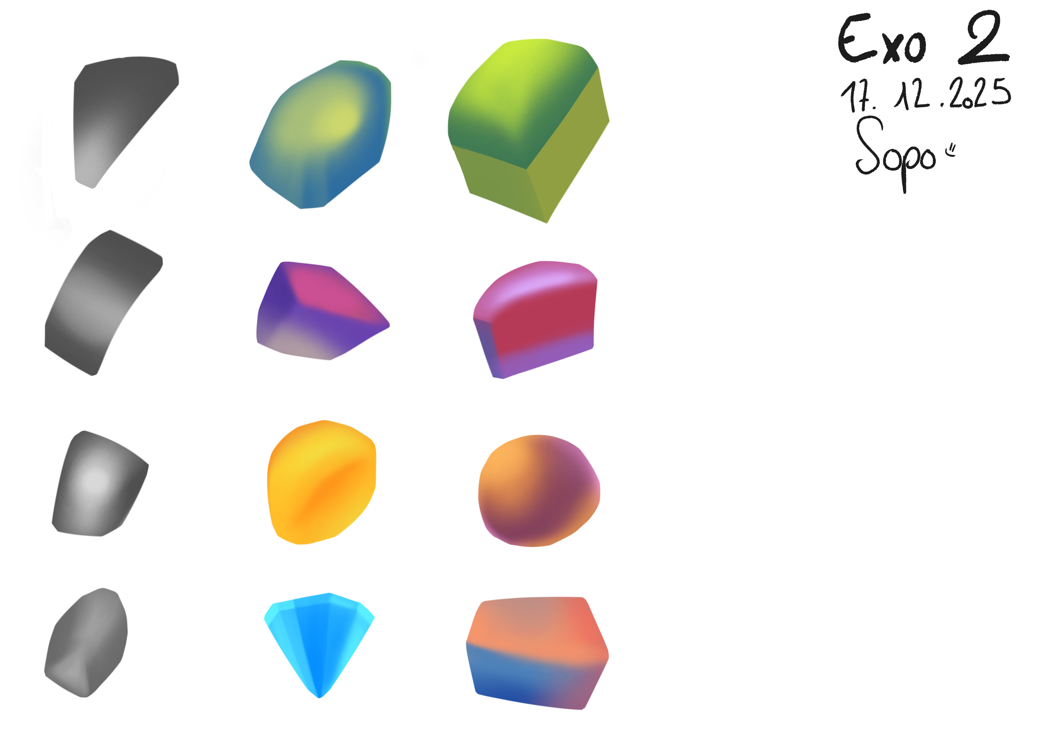 15. Top, merci pour la correction ! Je note ! Effectivement, j'aurais dû revenir sur mes formes 🙈 Entre temps, j'ai pu avancer sur l'exercice 2.5. J'ai commencé par faire une version un peu simplifiée comme c'était expliqué dans la vidéo du cours et puis quand j'ai vu les exemples incr-oyable-ment détaillés des élèves sur le forum, j'ai compris qu'il fallait aller au-delà de cette étape. Je me suis pas basé sur le croquis et les couleurs incluses dans le PSD (je sais pas pourquoi j'ai voulu me rajouter ce challenge...) ce qui explique les différences. En revanche, je vais le faire pour les prochains exercices histoire de me concentrer sur la partie painting véritablement.