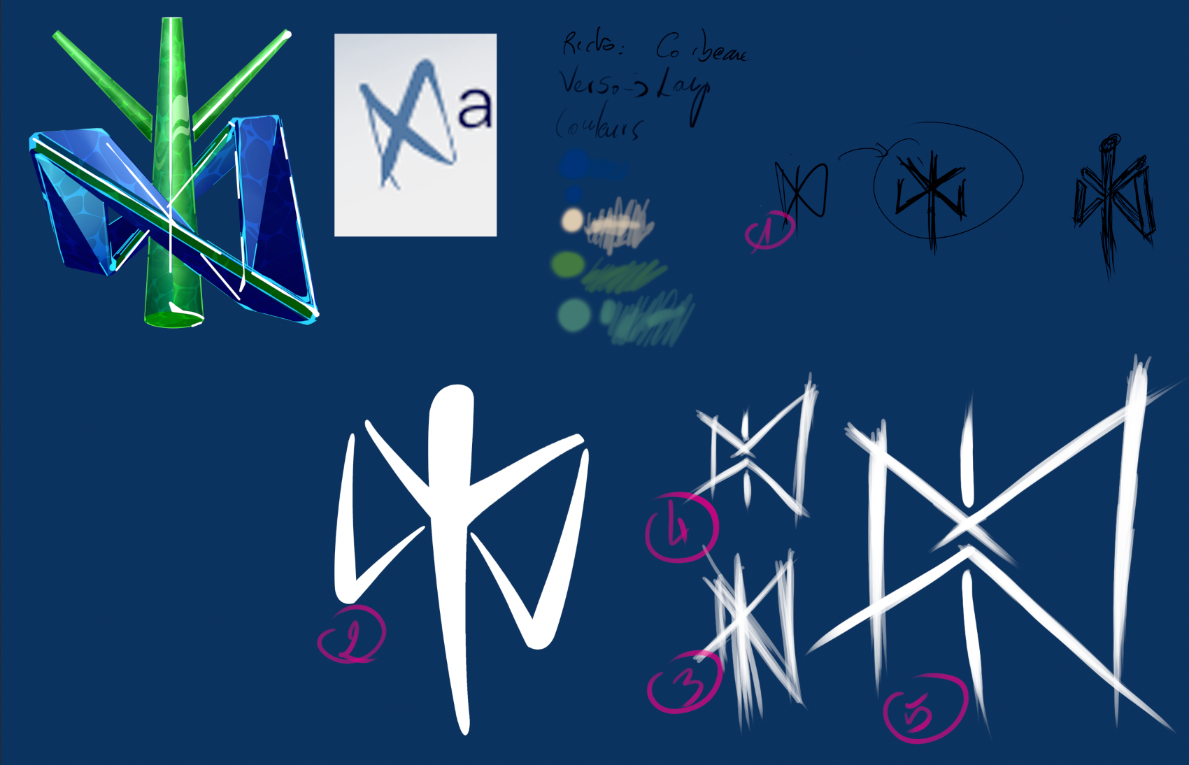 Salut @Neuf150, pour le passage pas clair c'est en fait le corbeau qui va tourner autour du logo, la caméra c'est le corbeau 😉 J'ai également pris du recul suite à tes remarques et étant sur la carte de visite j'ai repensé le logo pour le format 2D : Le n°5 me parait bien, avec un effet soit de graffiti ou de gravure grossière sur une matière, comme la pierre par exemple (mais j'ai peur de repartir sur trop de détails avec la gravure aha) Pour l'animation 3D et le modèle 3D lui même du logo je vais effectivement faire un autre WIP dans la partie 3D 👍 -