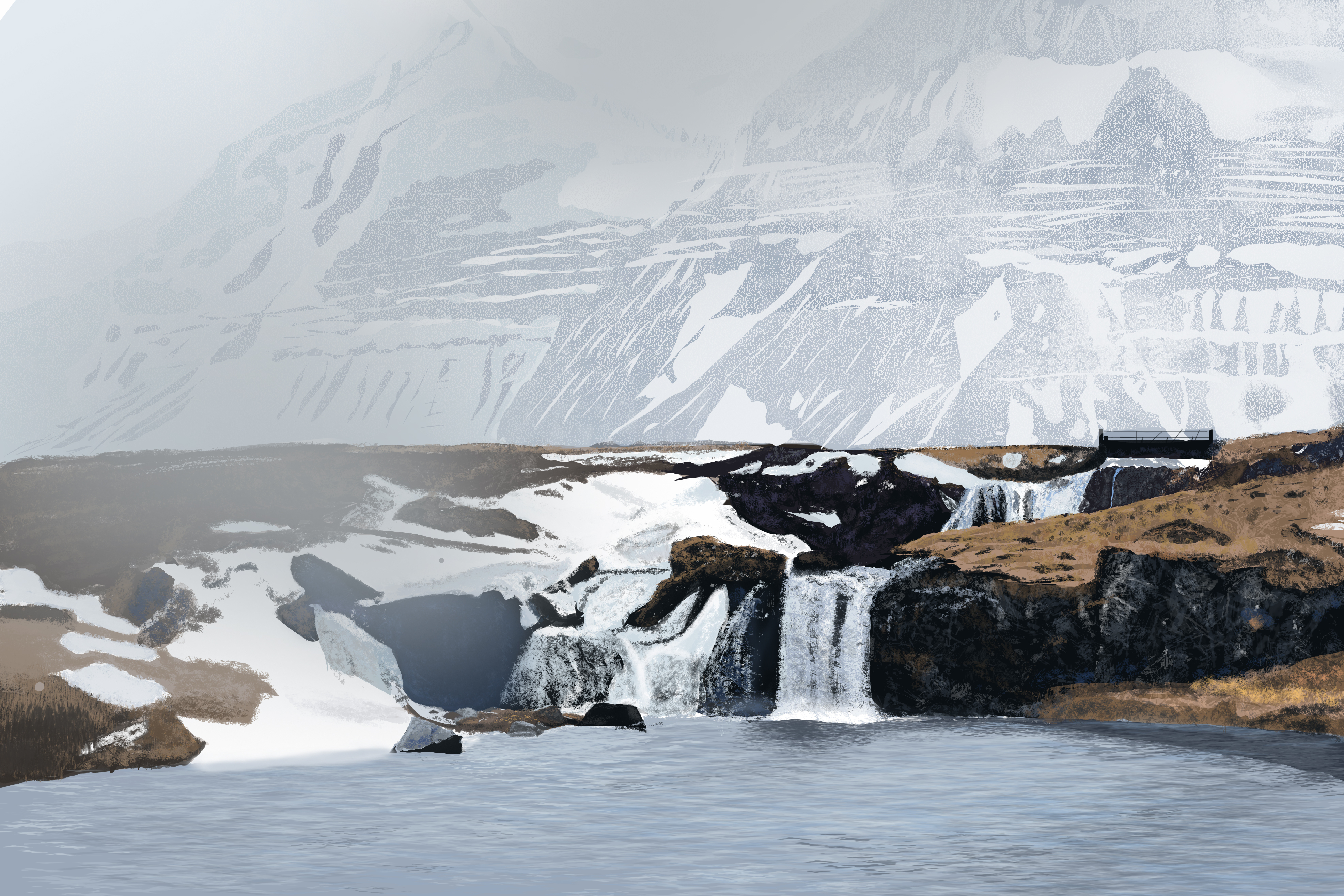 C'est vraiment trop chouette ! Je me demande juste s'il ne faut pas accentuer un peu plus les ombres au niveau du sol ? Les colonnes de glace sont très contrastées mais au niveau du sol on a presque l'impression qu'il y a de la lumière partout. Je trouve ça top aussi d'avoir rajouté des bout du corps dans les coins de l'images, ça le rend encore plus grand. Hâte de voir la suite! -