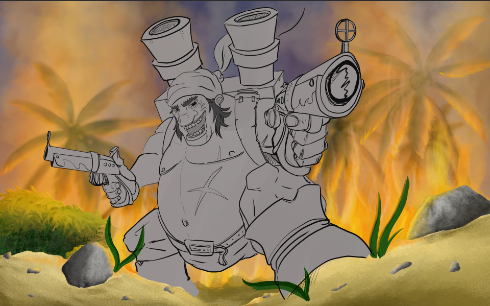 waaaah j'adore l'idée du pirate tortank ! La pose est cool aussi, j'ai hâte de voir la version finie ! -
