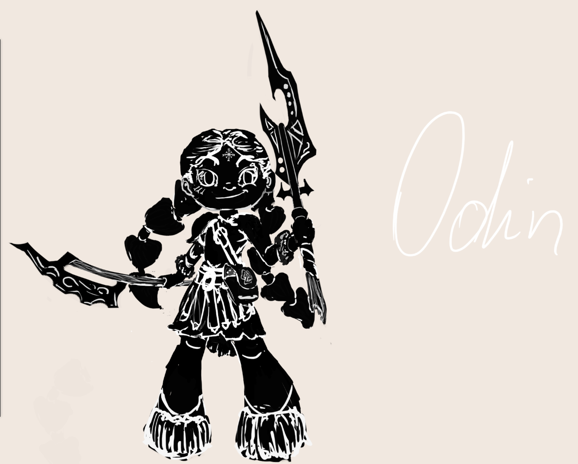 salut, c'est la première fois que je participe au challenge sur dps et je suis ravi de vous partager mon idée de concept d'odin; Je suis partit sur une fille plutôt qu'un Garçon. Elle est n'a que 10 ans, elle est pleine de vie et heureuse mais au fond elle is'est investit d'une quête moins joyeuse, celle de s'infiltrer dans les rangs les plus proches du Roi Ivar afin de venger son père. Pour cela Elle décide de jouer et compte bien vaincre Ivar au jeu de la piraterie. Elle à déniché tout ce qu'il faut pour faire partit d'un équipage, en particulier cette lance cassé en deux récupéré sur un champ de bataille. elle emporte tjr avec elle la seule chose qui lui reste de son père, son sac retrouvé après sa mort.