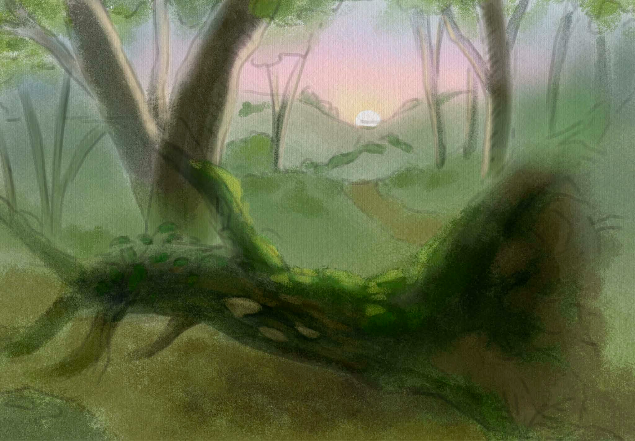 Hello ! Faut pas se laisser impressionner, tu vas y arriver 🙂 Effectivement au début mieux vaut rester sur le global, s'assurer que tout est en place avant de pousser un peu plus les détails. Je te conseillerais d'utiliser le croquis pour simplifier le process et vraiment te focaliser sur les notions du chapitre 1. Sinon c'est bien parti, pour l'instant le ciel et la forêt sont un peu sombre mais je pense que tu vas l'éclaircir ensuite. Keep it up !