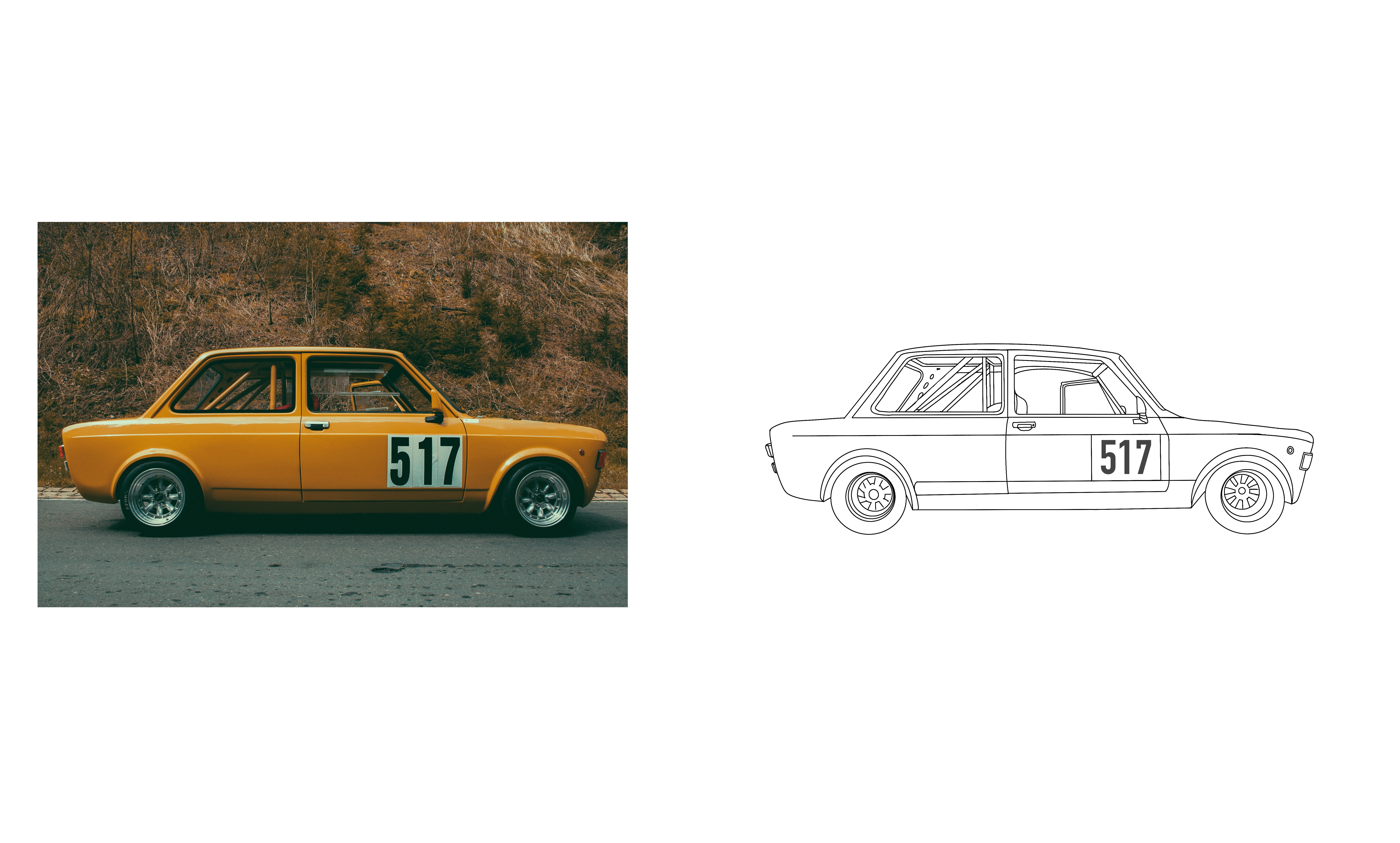 Croquis suivant: la voiture. J’ai bien galéré à comprendre les ellipses des roues. Pas trop sûr du résultat. Les arceaux intérieurs ce n’était pas facile aussi. voici le résultat pour le moment