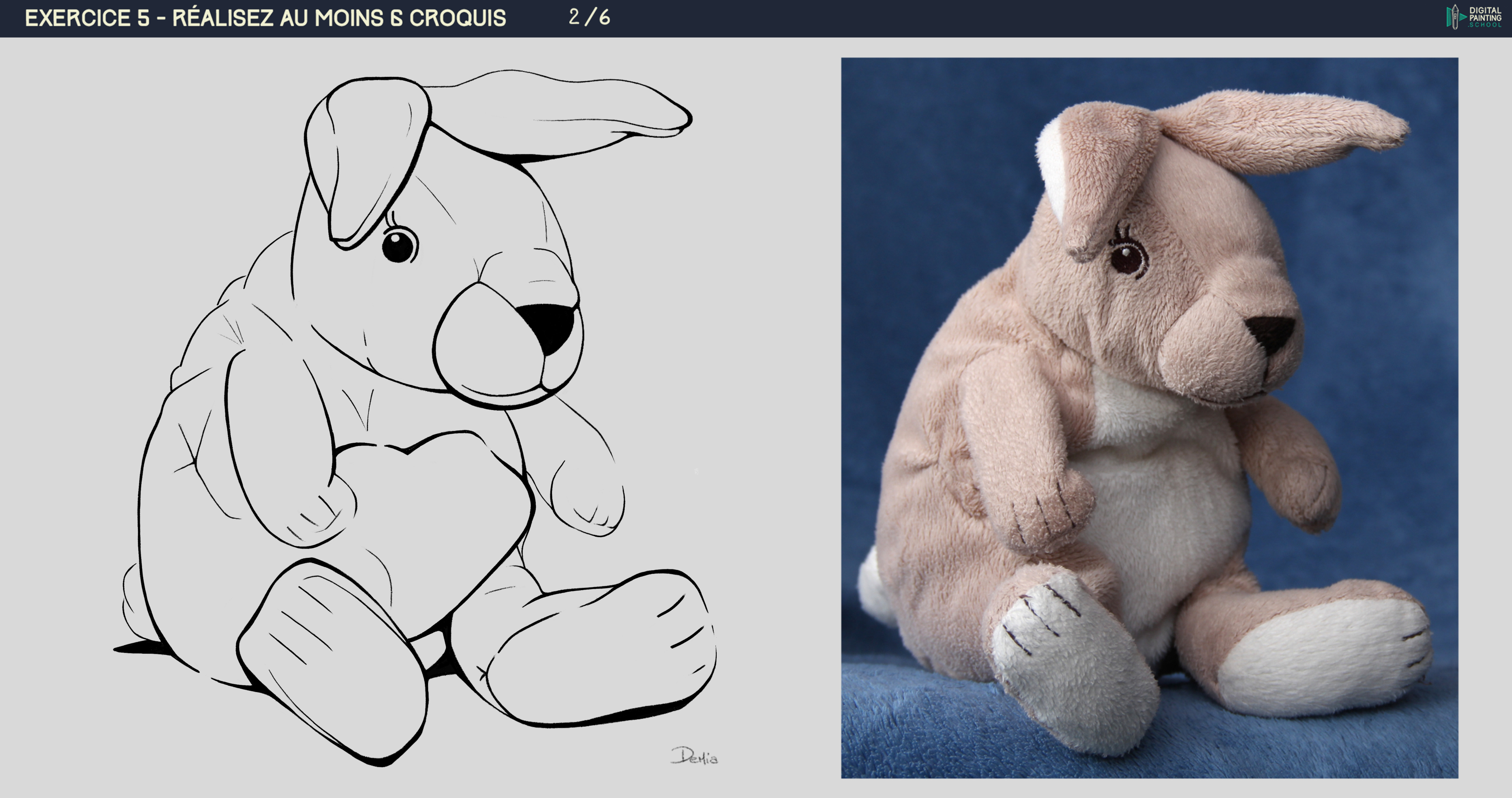 Salut @adrienG, Merci beaucoup pour ton retour, c'est super 👍, je suis là pour apprendre et progresser 😊. J'étais pas trop fan du résultat de mon lapin, je le trouvais un peu ennuyant mais j'arrivais pas, malgré différents tests, à corriger le problème. Du coup voici une nouvelle version, j'ai essayé d'appliquer tes recommandations et je me suis permise par moment de me détacher un peu de la réf pour tenter de donner du peps. Encore merci à toi 🙏 À bientôt 🌠