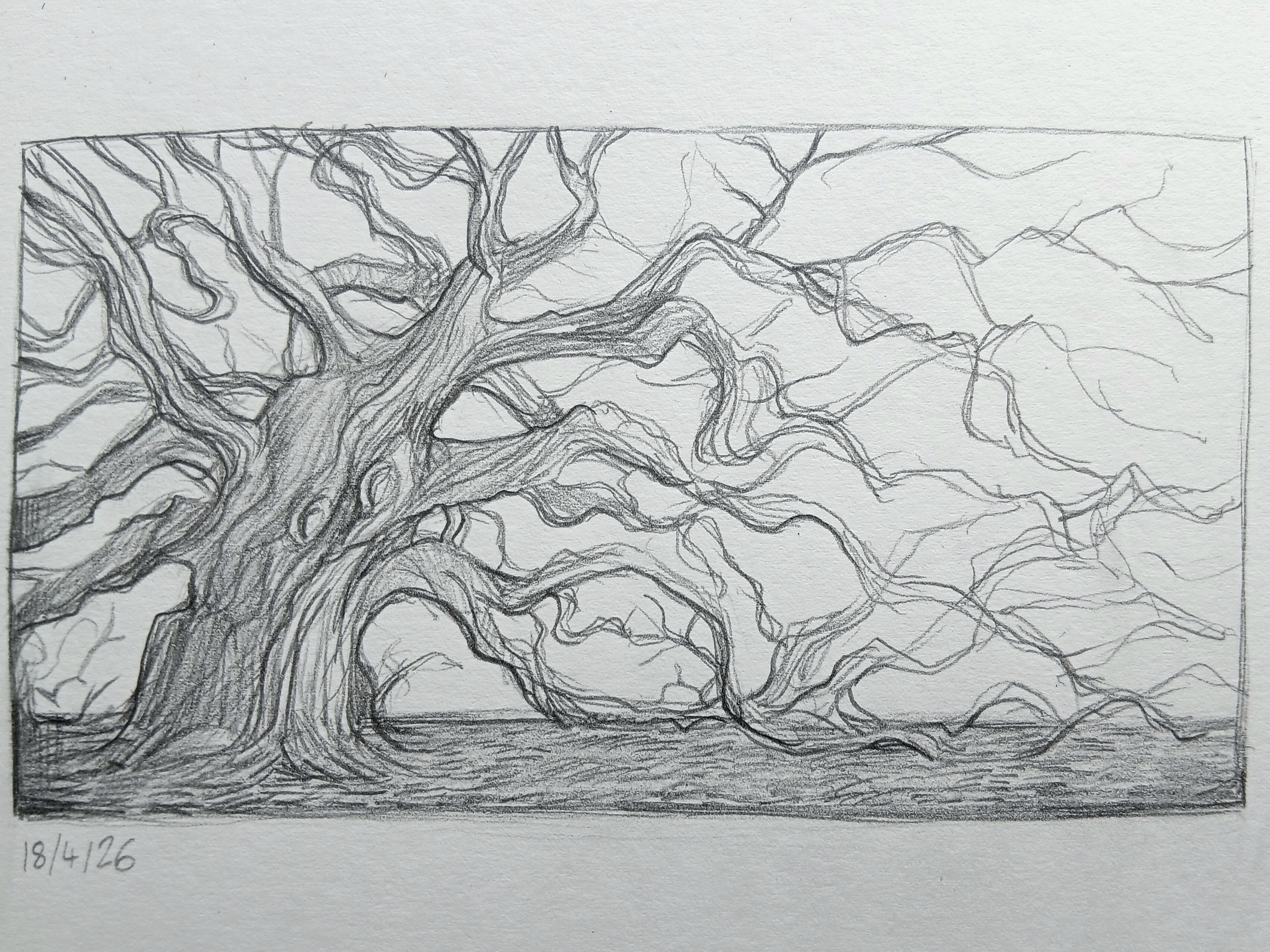 Jour 18/30 : Un arbre alambiqué (inspiré par l’Angel Oak - Charleston) dans mon carnet pour aujourd'hui ^^ -