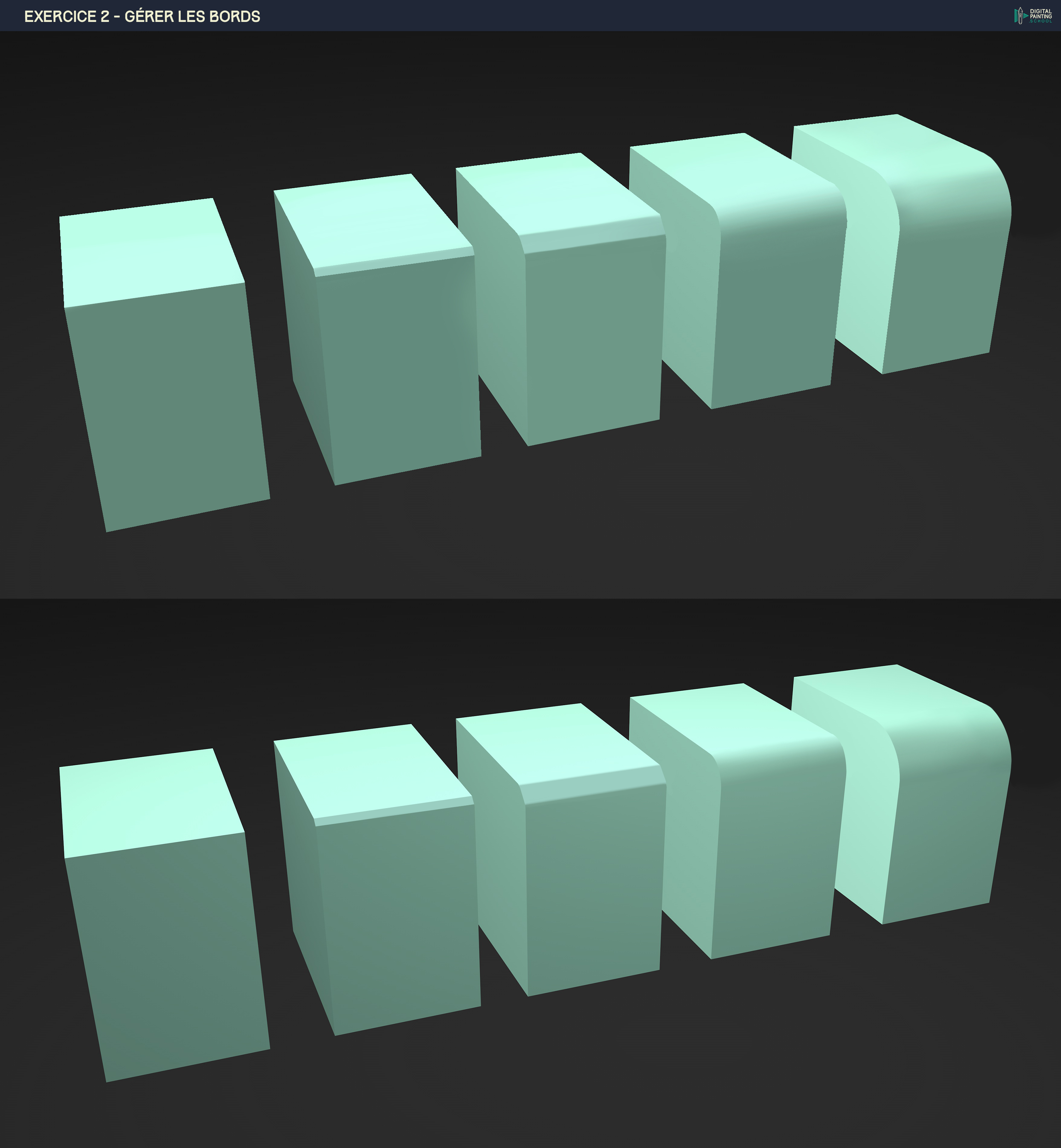 Coucou, Oui prend ton temps, le but sur ce chapitre c'est vraiment d'arriver à prendre en main les outils et faire des blendings corrects. Je trouve que tu t'en sors assez bien même si les formes diffèrent un peu. on devrait avoir un dégradé plus doux ici, plus d'ombre ici et une forme moins large, ici essaies de conserver le bord de droite (transition ombre et lumière) un peu plus net. Et pour celui ci le blending n'est pas assez prononcé (c'est encore un peu trop net) Tout est une question de dosage et de pression du stylet, n'hésites pas à changer la sensibilité de la tablette d'ailleurs si tu trouves que c'est trop doux ou trop ferme.