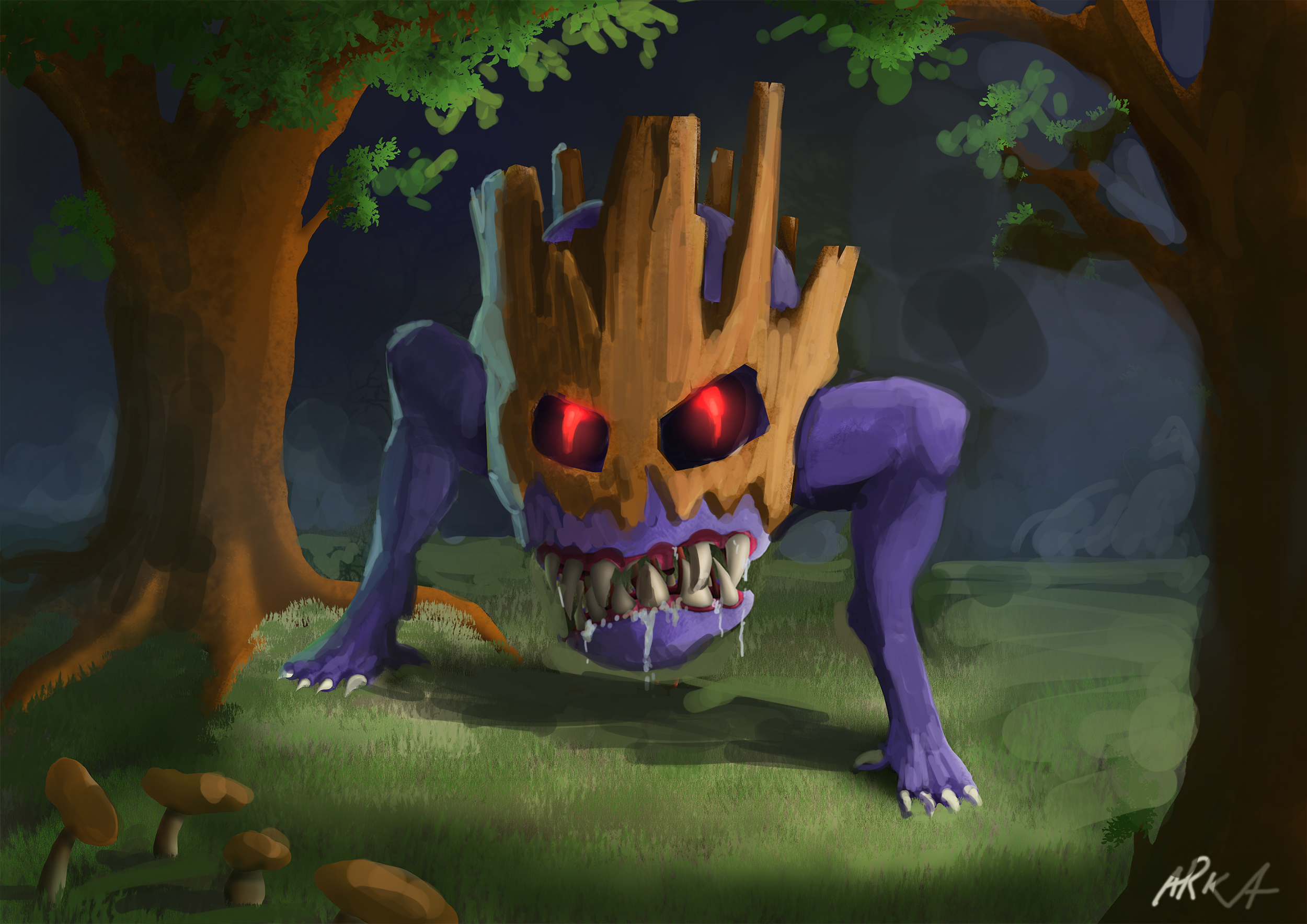 Salut @Arka Ah yes effectivement il est vraiment original ton monstre pour le coup !;) oui t'en fait c'est un monstre donc l'anatomie ne répond pas forcément à des codes traditionnels mais par contre il faut quand même respecter une certaine logique de fonctionnement pour que ce soit cohérent et que ton spectateur y croit 😉 je t'ai fais un rapide Po pour le monstre de choses que tu pourrait faire pour rendre le truc un peu plus cohérent au niveau de l'anatomie et des volumes 😉 la bouche peut être plus simple comme ça , tu peux même rajouter quelque filet de baves pour les détails 😉 pour les jambes je suis aps un expert en anatomie de créatures mais j'ai essayé de te montrer comment les volumes peuvent un peux mieux s'articuler 😉 essaye de comprendre comment ca marche au niveau des articulations , tu peux t'aider de référence d'animaux par exemple , tout ce que tu trouves qui peut t'aider et qui ressemble a des patte articulés de cette façon 😉 Pareil pour le masque pense en différents plans et volumes pour bien le faire tourner 😉 grâce à la lumière les yeux je t'ai fais une proposition de les rendre plus menaçant mais tu fais comme tu le sens 😉 hésite pas a utiliser des lumière plus froide ou du brouillards par exemple dans le background pour mieux détacher ton perso 😉 Voila sinon c'est good continue comme ca 😉