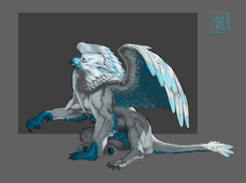 Très cool !! 🙂 Pas facile niveau morphologie, musculature etc. mais c'est bien réalisé. En plus on voit beaucoup moins tes lines et je trouve ça beaucoup mieux. ça manque peut être un peu de valeurs pour mieux lire le griffon. (patte levée et aile arrière un poil plus sombre que celle de devant? à tester.) -