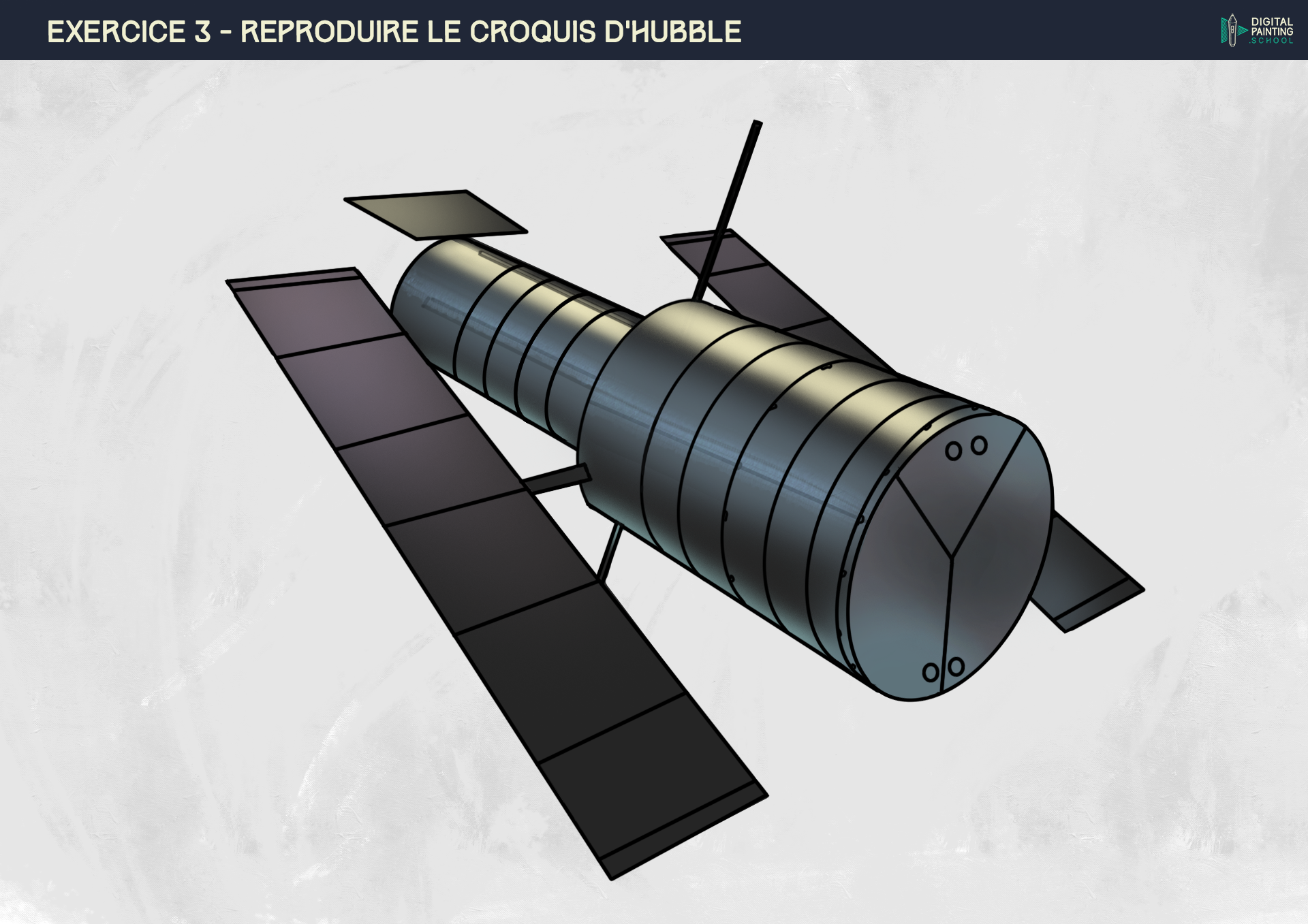 2. Bonjour à tous, Voici le résultat final de mon croquis d'hubble, j'ai pris beaucoup de plaisir à le faire et j'ai appris beaucoup de techniques que je connaissais pas. Très instructif. Merci beaucoup pour cette exercice d'introduction A bientôt
