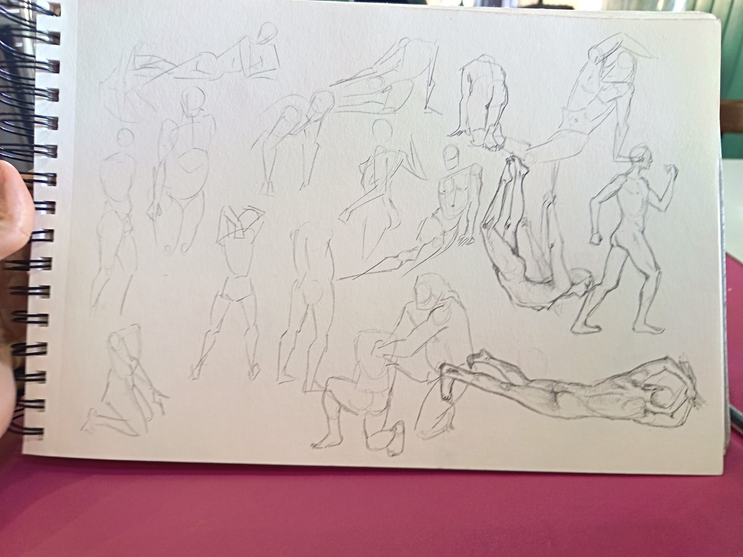 Salut ! Bon petite session de gesture, j'avais jamais fait avant j'ai fait avec le site line of action, 20 min 5 chacune, et bah je m'attendais pas à ce que ce soit aussi dur 😅 et mine de rien le temps passe suuuuper vite ! -