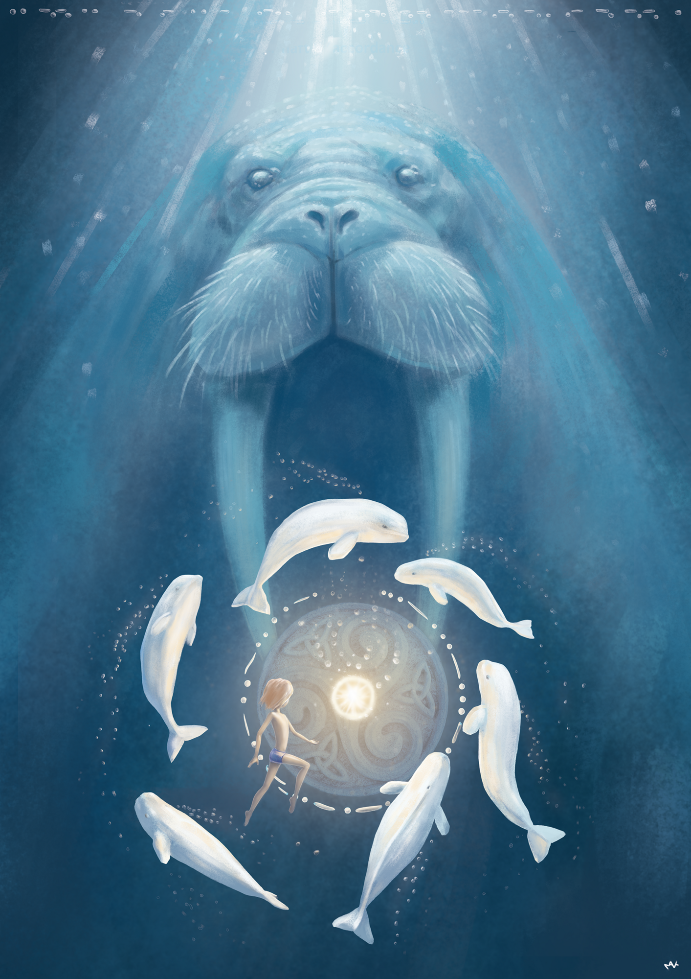 Bonjour à toutes et à tous, Je vous présente Le Morse, Plume et les Bélugas, troisième affiche de la série L’Hiver de Plume. Cette création s’inscrit dans un projet composé de six affiches illustrées, dévoilées progressivement tout au long de l’hiver. L’image explore un univers aquatique et symbolique, autour de la notion de présence et de profondeur. Issue de l'univers de mon conte : L'Enfant d ela Mer, les Êtres de l'Eau et le Secret de l'Accordance J’y travaille le rapport aux échelles, à la perspective athmosphérique, au mouvement circulaire et à la lumière, afin de proposer une scène immersive et ouverte à l’interprétation. Le projet L’Hiver de Plume, série de 6 affiches sur lesquelles je travaille actuellement, cherche à instaurer un temps de regard plus lent, en laissant une large place au sensible et à l’imaginaire. Merci pour vos retours et échanges et belles fêtes de fins d'année