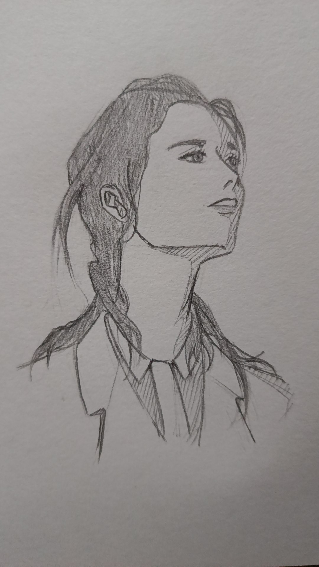 Merci @Kyuare. Voici la suite. Pour le format, je ne suis pas sûr de si ça sera lisible, j'ai fait une composition de 3 étapes de l'exercice avec en 1 le croquis fini tout simple, en 2 le croquis avec hachures (pas forcément maitrisé) et en 3 une tentative de mise en couleur du fond pour faire ressortir le personnage. Si on me le demande je peux poster les 3 étapes en fichiers séparés.