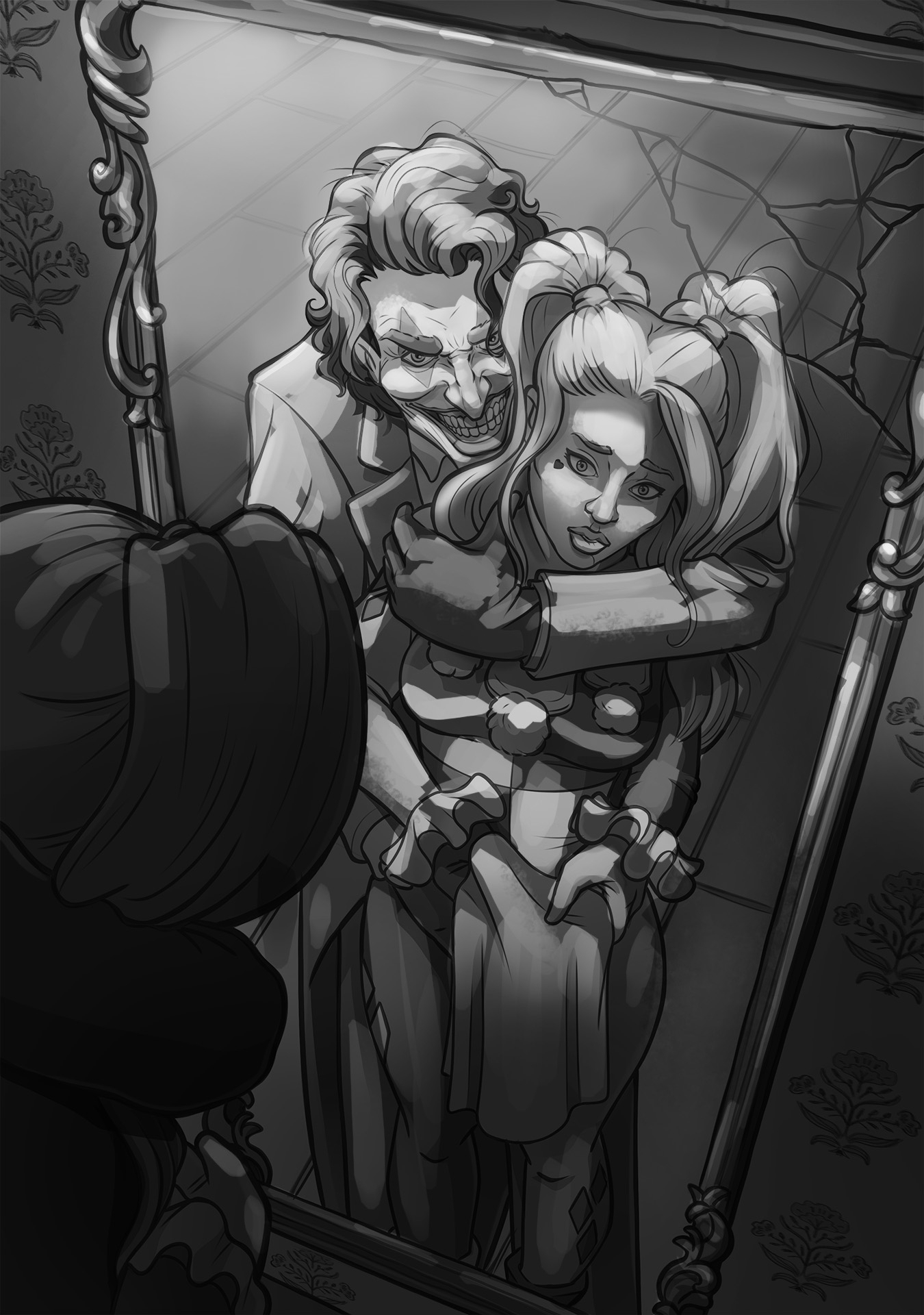 2. Hello ! Super cool cette avancée, c'est nickel ! Je te conseille de placer ta lumière bien comme il faut à la bonne intensité tant que tu es en noir et blanc, ce sera plus facile de corriger que si tu vas direct en couleur. 🙂 Le choix de la mettre en haut à gauche est une très bonne idée, je serais parti là-dessus aussi. Je t'ai fait un rapide exemple d'une intensité qui pourrait être intéressante pour ton image pour t'aider. Hâte de voir l'évolution !
