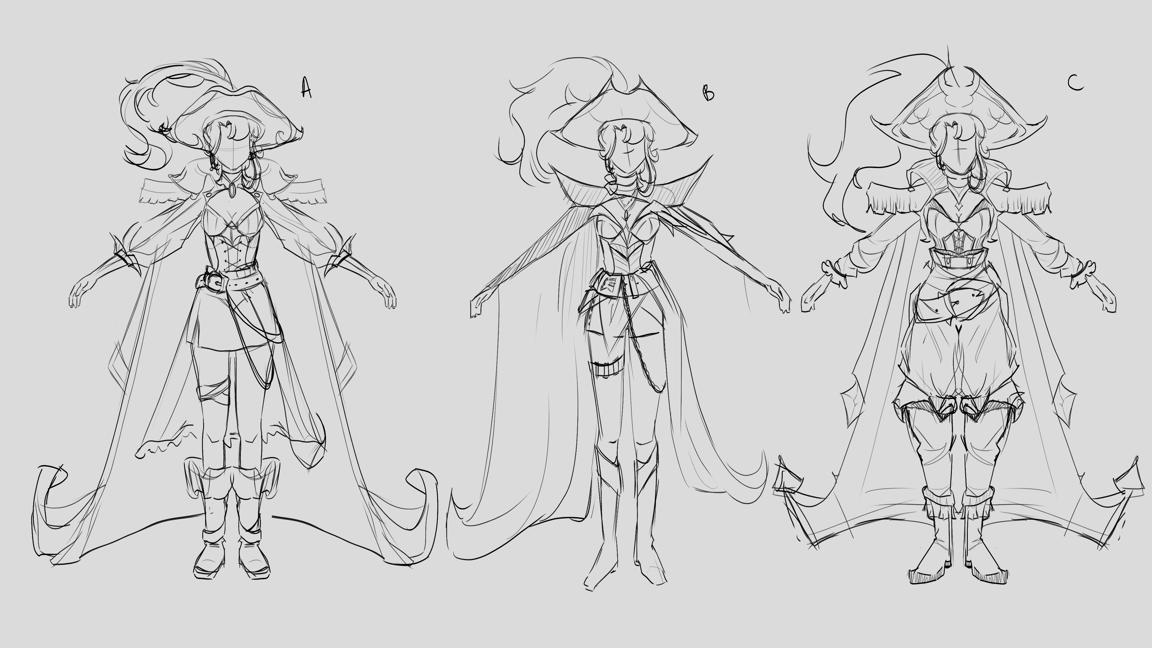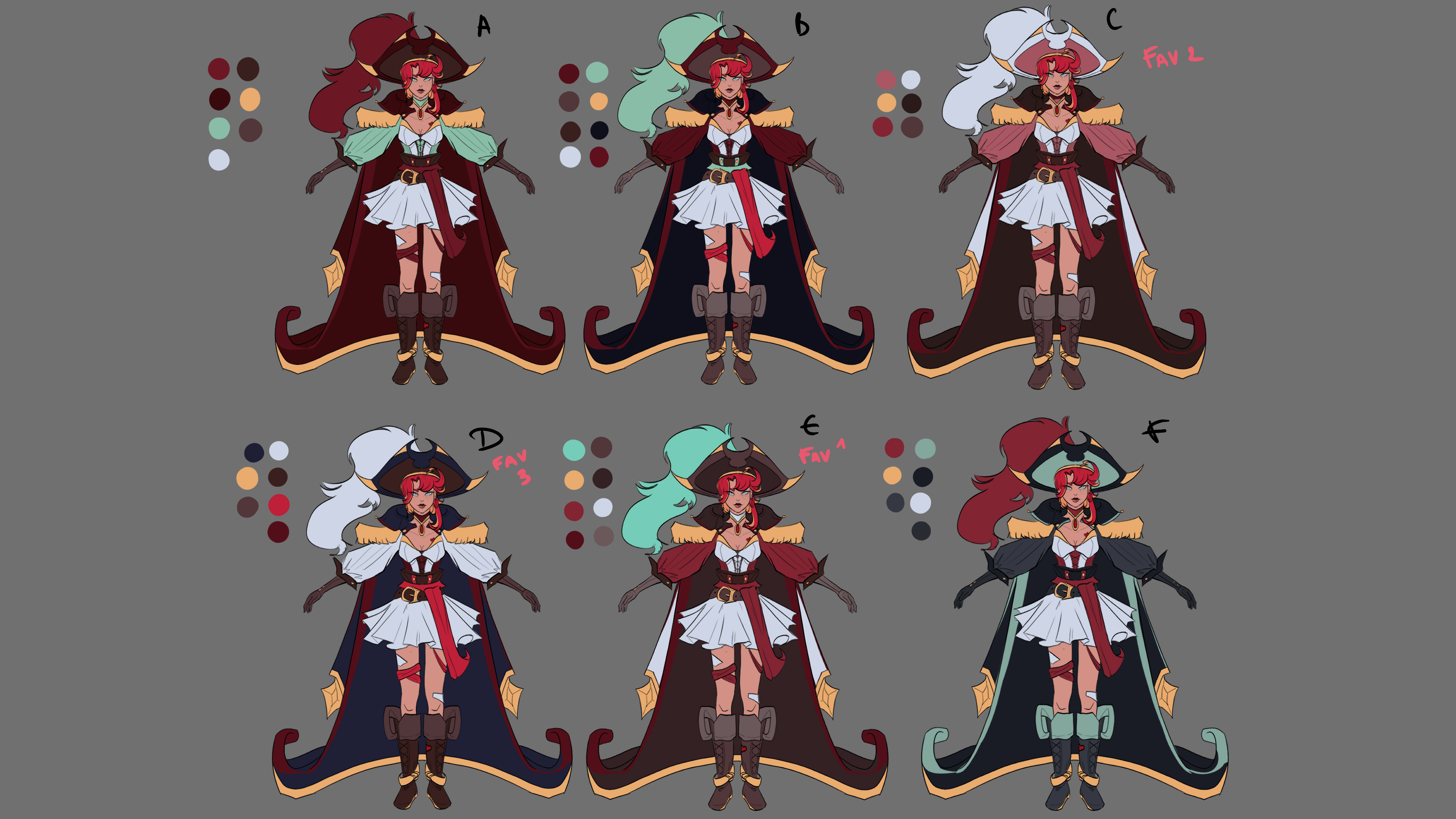 Bonjour à tous ! je vous présente ma première participation au DPS ! Je suis contente d'avoir pu y participer, j'ai su que ce concours se déroulait grâce au meilleur des prof #maolegoat (merci) Ce concours n’a pas été facile à faire, surtout pour le décor qui est un de mes plus gros points faibles, où j’ai heureusement pu être aidée grâce au second meilleur prof #williamlegoat2 (merci). Donc pour expliquer un peu mon processus créatif. Pour commencer, j’ai décidé de prendre Thomas Pearl et de le faire en femme. Ensuite, j’ai commencé par faire mon chara, du moins sa tenue. Au début, aucune des trois ne me plaisait, du coup je les ai mises dans mon mixeur et j’en ai sorti un mélange qui m’a un peu plus plu. Ensuite, j’ai fait plusieurs color keys, un enfer de choisir le meilleur donc vous allez sûrement pas kiffer mes goûts, j’ai choisi la color E. J’aimais particulièrement les couleurs complémentaires (le bleu/vert de la plume, avec la tenue rouge) dans les autres tenues, mais je trouvais que j’avais mal utilisé le rouge, sachant que je voulais que ce soit ce qui ressorte le plus… (cœur brûlant) J'ai également réalisé mon arme en 3D pour me faciliter sa mise en place dans mon illustration finale. Je l'ai modélisé grossièrement sur blender, et je l'ai juste mis dans CSP vu que l'on peut utiliser la 3D dedans. Et enfin le croquis, j'ai voulu sécuriser en faisant une symétrie, simple mais efficace ! -