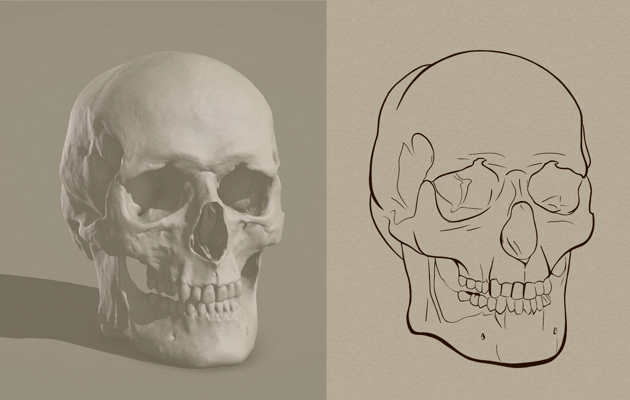 Bonjour 😊, Voici mon exercice du Crâne, c'était plutôt intimidant de commencer par une image assez complexe mais c'était super cool à faire 👍. Merci d'avance pour vos retours 🙏 À bientôt 🌿