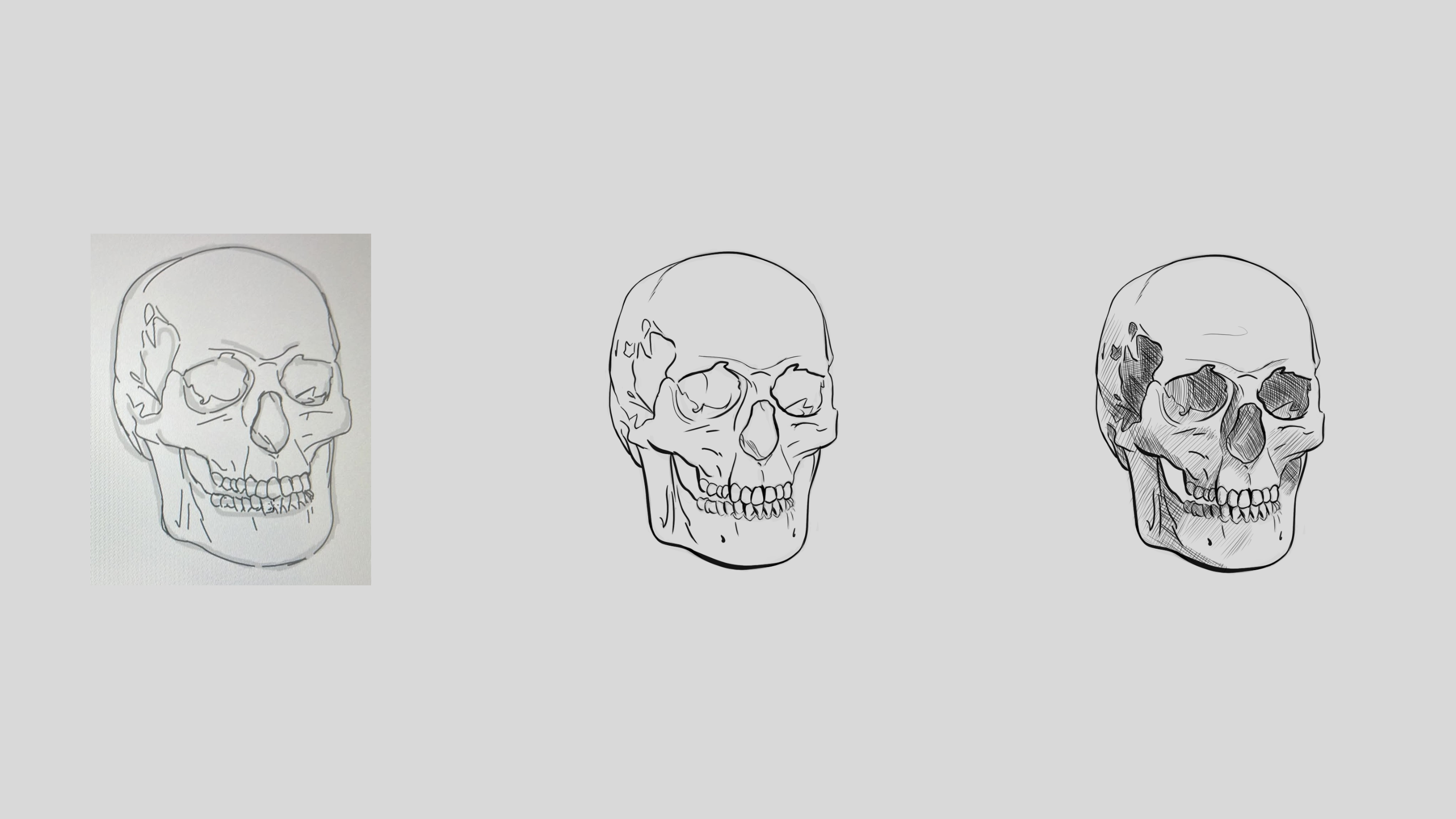 Et bonjour ! Voila ma production du jour, il s'agit de l'exercice 4 ! J'y ai mis les différentes étapes de production. J'ai malencontreusement perdu les calques de l'étape 1 et 2, qui sont sur la première image (heureusement, j'avais pris une photo avant). La deuxième image correspond à l'étape 3 sauf que j'ai directement fait mes lines. Je ne sais pas pourquoi, je suis pas 100% convaincu par mes lines en fonction de la lumière. J'ai essayé de me baser sur l'orientation de la lumière mais en regardant comme ça sans le modèle, je trouve que quelque chose ne va pas. La troisième image, c'était le bonus, pas demandé dans l'exercice, mais j'ai voulu expérimenter l'ombrage par traits, vous me direz ce que vous en pensez. Voila ! Bientôt la suite ! -