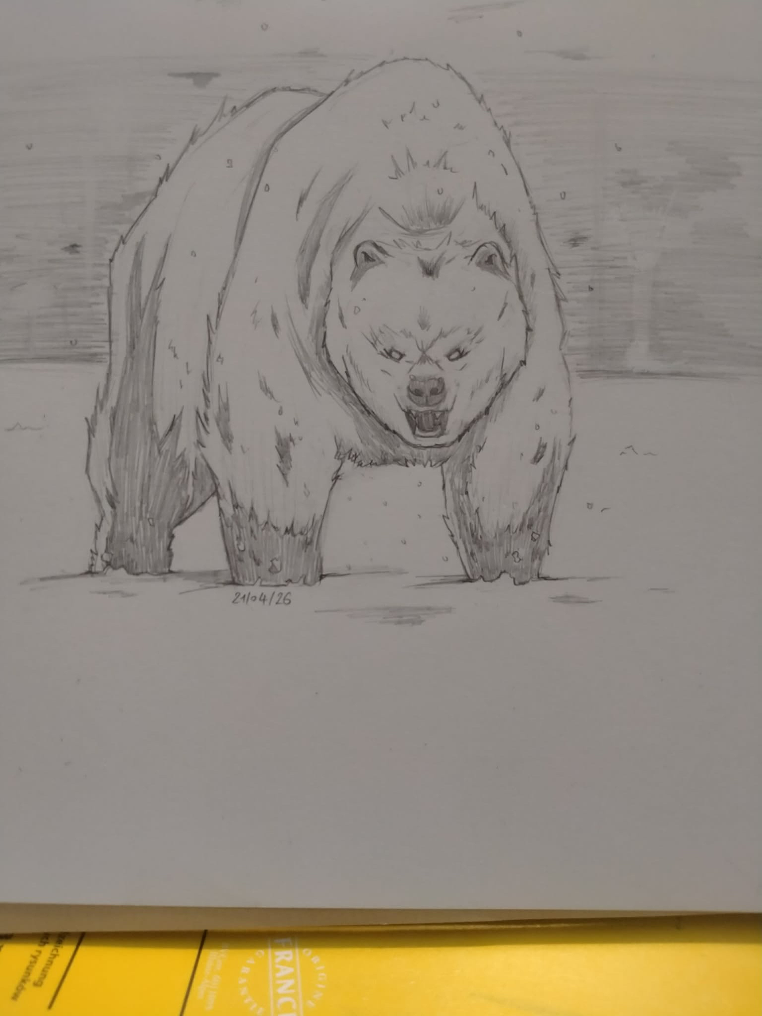 Je continue à m’amuser sur les stylisations, cette fois d’après une photo d’ours. Je suis content je commence à entrevoir comment ça va impacter mon style dans le futur, c’est rafraichissant! 😁 -