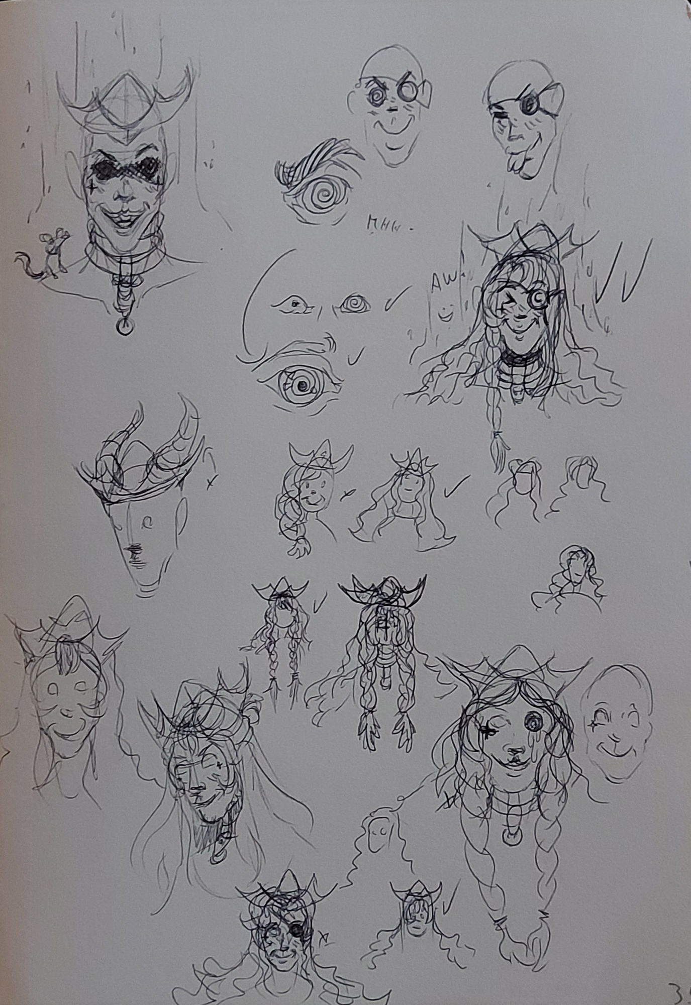 Ça va partir dans tout les sens ce perso..Mais il est cool. Je sais, il ressemble à une femme. >:} Cette fois ma référence principale c'est le brief. Et une image de tresses sur pinterest; Pour le dessin..en bas a droite. ( Voir page expérimentations du visage. )