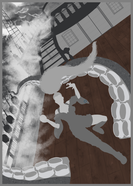 Je pense que je peux aussi jouer avec le corps du serpent et le format de la compo comme suggéré sur le discord, pour apporter un peu de profondeur, et perdre ce côté un peu engoncé, au boulot ^^- 39 réponses