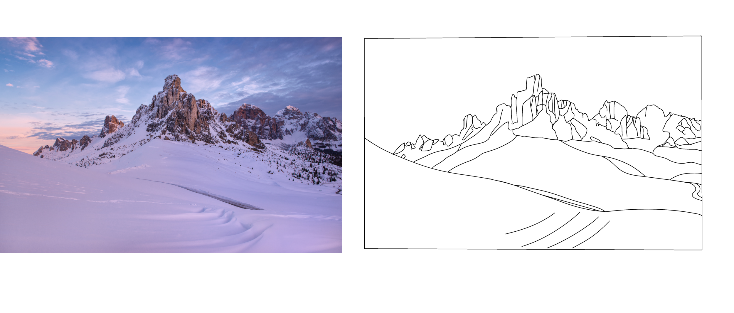 Hey @Melineko yes bien joué pour la correction de la montagne c'est bien mieux !:) mais tu as tjrs encore des délimitations trop marquées sur ton arrière plan : - ici tu peux venir supprimer cette ligne plus foncé aussi , elle n'est pas présente sur la référence -tu peux encore estomper le haut de ta montagne dans le brouillard un peu plus et aussi le côte gauche on ne devrait pas vraiment voir ce rebord de montagne normalement sinon le premier plan est top , juste tes reflets dans l'eau qui sont un peu trop groupés et volumineux , et pas asse dans la longueur Pour la rose franchement tu t'ai très bien débrouillé !;) -au global c'est surtout des contrastes plus forts et des corrections de couleur qui te manque 😉 notamment sur la partie droit de la partie bulbe principale de ta fleur ou tes couleurs devraient être plus saturées et contrasté en ombres, je t'ai fais un rapide po pour te montrer les zones en hachurées ou il y'a besoin de plus de contraste et d'ombre de couleur😉 pour la partie inférieur au global ça manque également de zone d'ombre plus accentuées et aussi d'ajustement de couleurs - ta grande feuille ici devrait être estompé dans l'ombre du fond sur la partie droite ne soit pas timide avec cela 😉 -sinon ton vert doit etre plus sombre , plus contrasté et encore plus froid , tu dois avoir des touche de bleu même sur les extremitées de la feuille a gauche ;)et hésite pas a rajouter des nervures en forme d'alvéoles etc - example ta tige manque de saturation et de contraste également 😉 le vert a la lumiere devrait être bcp plus intense 😉 et le côte droit dans l'ombre - ici sur ta feuille secondaire , c'est la couleur qui ne va pas ,tes teintes sont trop chaudes pour le moment -hésite pas a mettre cette partie plus dans l'ombre et cet autre partie à droite est trop claire pour le moment sinon c'est good continue !;)
