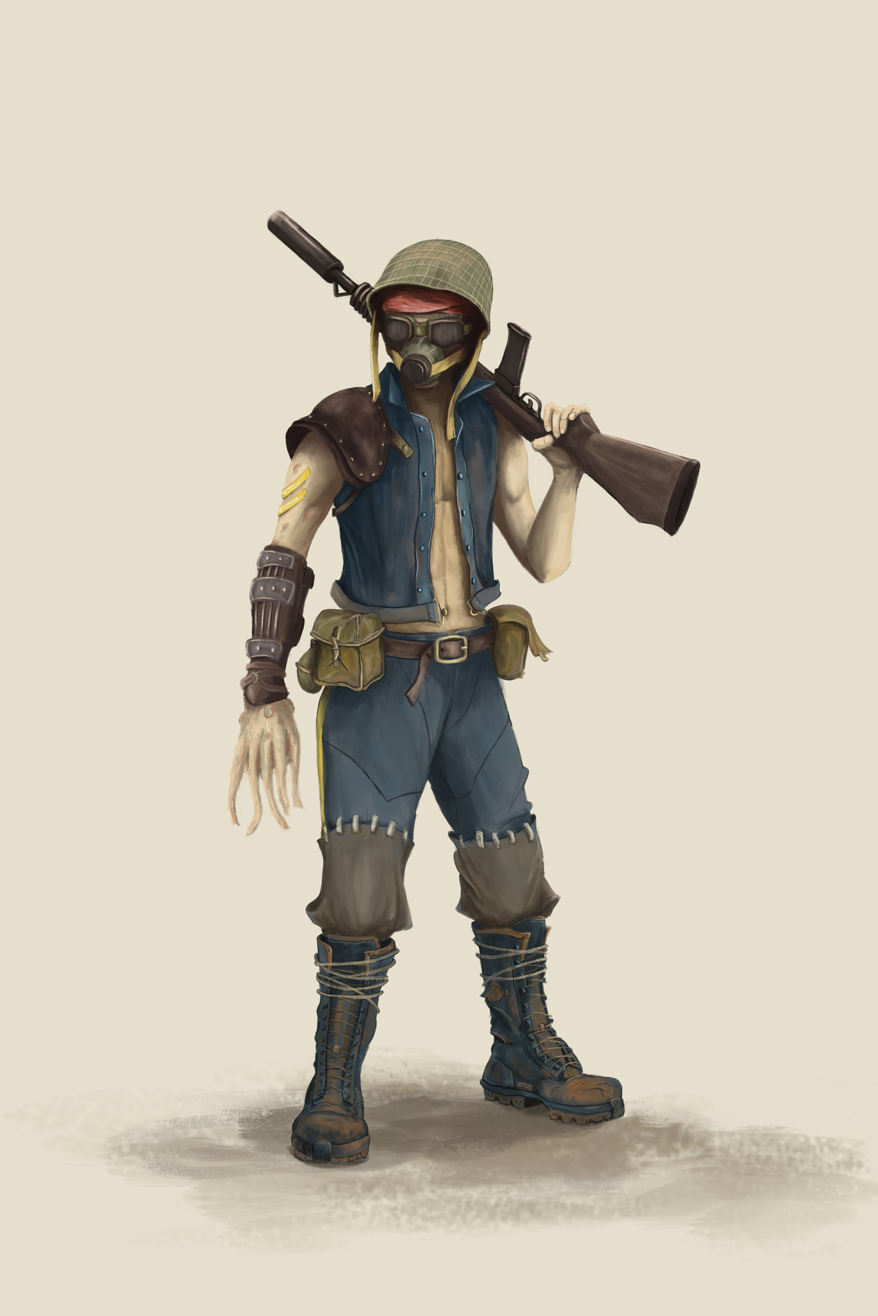 Hello, Merci @starman à chaque nouvelle illustration j'essaie d'organiser mes calques et mes groupes mais peine perdu le chaos reprend toujours ses droits 😄Chouette design! les équipements sont précis et bien pensés. L'atmosphère nous amène tout de suite dans le vif du sujet. Bravo à toi! @raza Dans le genre sale tronche, les hyènes y'a pas mieux. Cette nouvelle version est glaçante à souhait. Top! @stefou Comme d'hab, super concept. Mais ce soldat mutant aquatique est juste waouh! 😍 Merci pour le partage des étapes. J'aimerais un jour être capable de trouver une pose cool juste en partant d'1 bonhomme en fil de fer comme tu le fais. 😏 @Mirahat L'idée est marrante. Quelle imagination! J'aime beaucoup ce style mastodonte/petite tête. Et la façon dont tu as traité les matière c'est du grand art. 👌 Je poste le stade "final" de mon soldat post apocalypthique après quelques corrections de rendus. J'ai manqué un peu d'inspiration sur la main droite. Je pense le mettre en situation dans un environnement désertique genre terre morte. Là avec ce fond quasi blanc difficile de faire un bon lighting. Il est bien possible que mon personnage manque un peu de contraste. J'ai oublié de vérifier en cours de route.